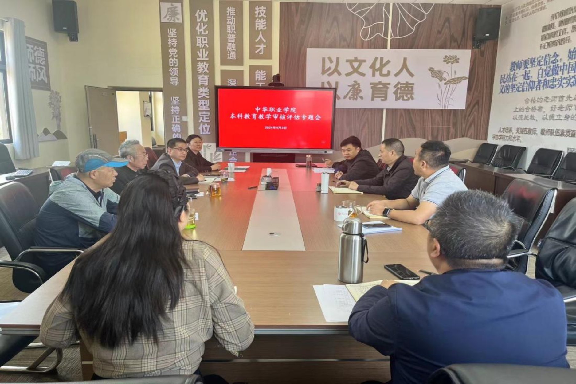 4月3日上午,中华职业学院在修远楼512会议室组织召开本科教育教学审核评估专题会,对前期自评报告进行专项检查评阅,并就学院下一阶段审核评估工作作安排。学院全体党委班子成员参加会议。会议由副院长曾军主持。