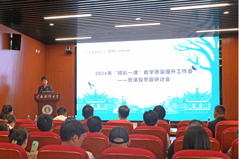 本次会议以“课程思政润泽心田·迎评促建躬耕校园”为主题,共设“专家交流分享”“课程设计与教学研究探讨” “课程建设交流与辅导”三个环节。