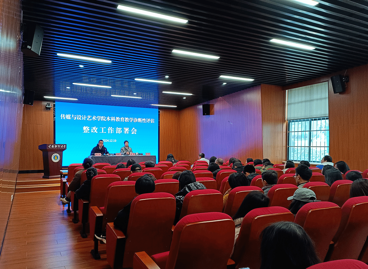 为全方位推进学校本科教育教学诊断性评估问题的整改工作,推动各项任务落细落实,达成“以评促建、以评促改、以评促管、以评促强”的目标,2024年12月19日下午,传媒与设计艺术学院在齐远楼106报告厅召开本科教育教学诊断性评估整改工作部署会。院长袁洪主持会议并对整改工作提出要求,副院长李楠传达审核评估通知及整改方案,学院全体教职工参加会议。