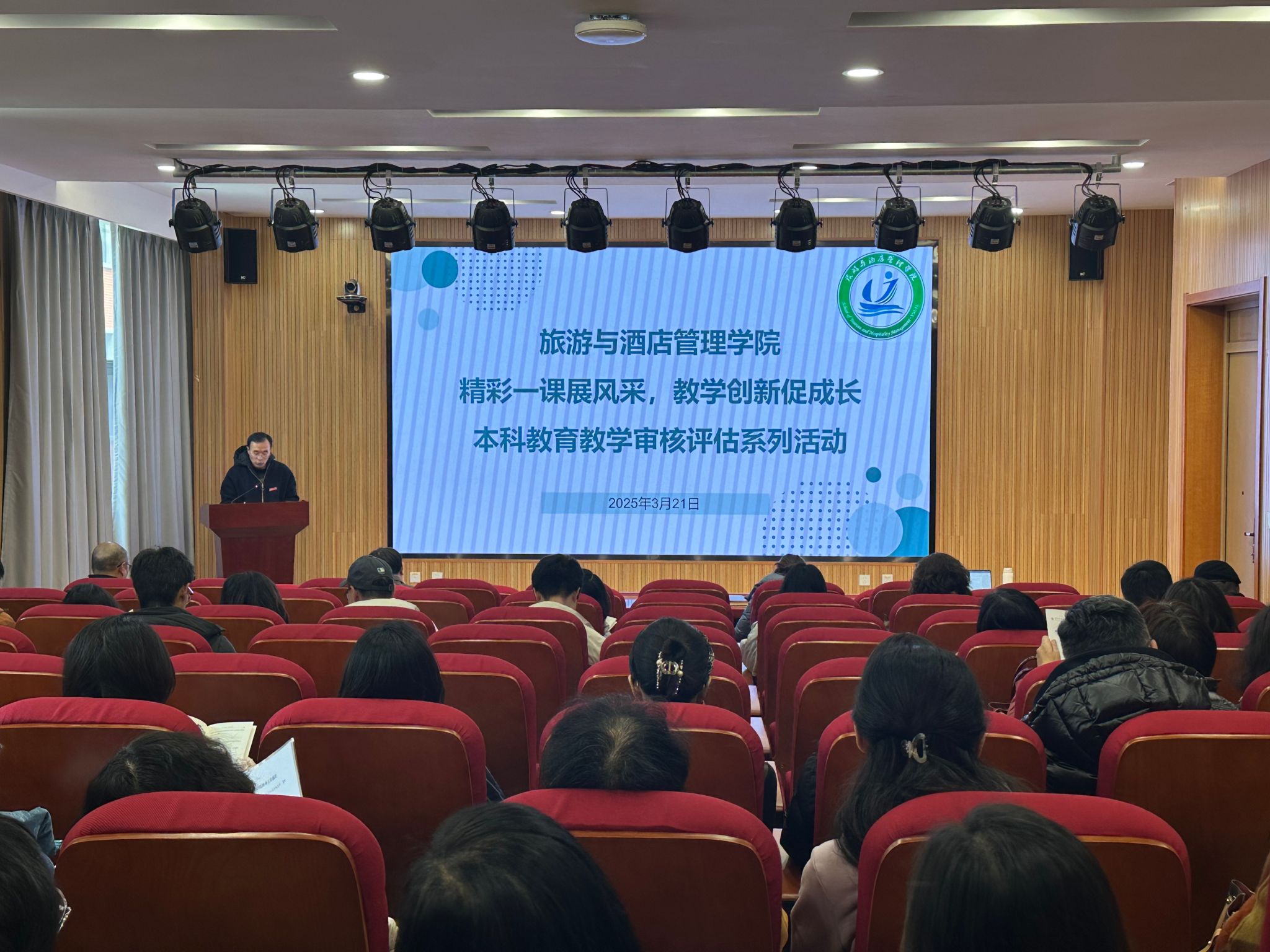 为进一步提升本科教育教学质量,迎接新一轮本科教育教学审核评估,2025年3月21日下午,旅游与酒店管理学院在齐远楼多功能报告厅开展“精彩一课展风采,教学创新促成长”本科教育教学审核评估系列活动。本次活动旨在展示学院教师教学风采,促进教学改革创新,提升课堂教学质量,为培养高素质应用型旅游与酒店管理人才奠定坚实基础。学院全体班子成员和教职工参会。