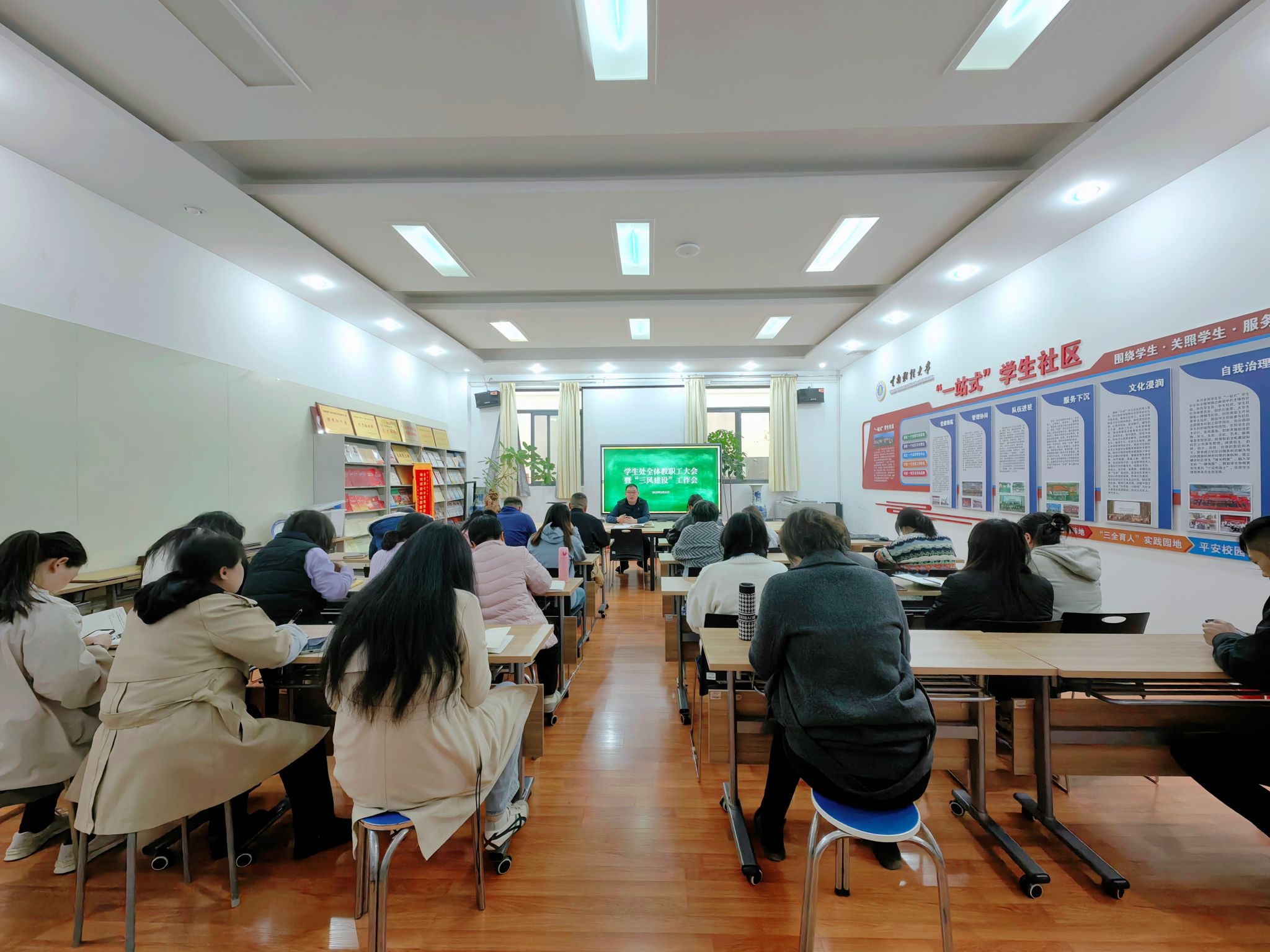 3月31日,学生处召开全体教职工大会暨“三风建设”工作会,学生处处长沙磊,副处长王帅、张雯及各科室教职工参会。