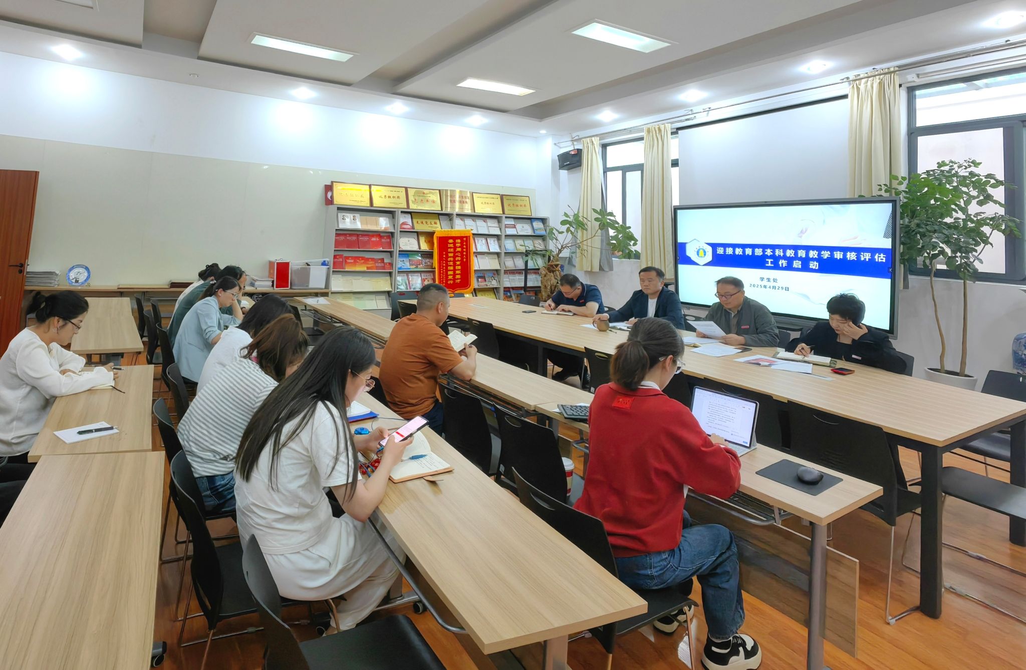 4月29日,学生处召开全体教职工大会暨本科教育教学审核评估工作动员会,传达学校本科教育教学审核评估工作动员大会的会议精神,认真开展迎接审核评估各专项工作的检查落实。