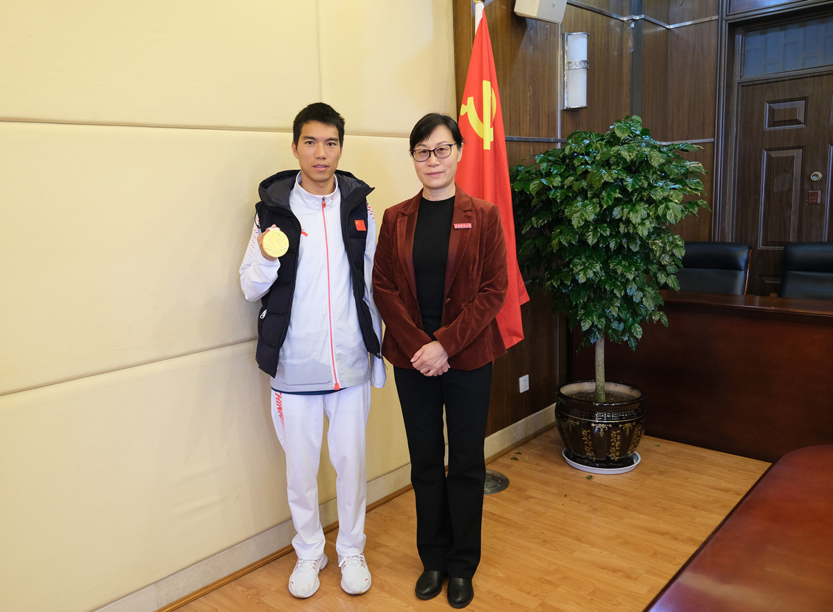 10月30日,参加完第十四届全国运动会和全国第十一届残运会暨第八届特运会,斩获两金一银一铜的bat365官网杰出校友李朝燕回到母校,与师生面对面交流。此前,他在刚刚结束的2021年东京残奥会上以2小时25分50秒的成绩蝉联男子T46级别马拉松冠军,并打破该级别赛事残奥会纪录。