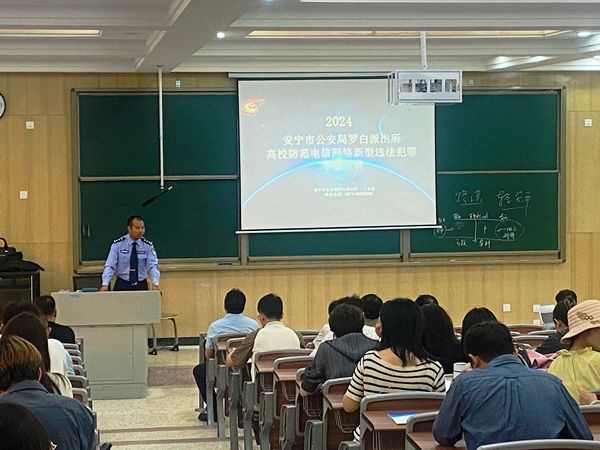 为提升安宁校区师生反诈防骗的能力,贯彻“预防为主”的安全工作方针,保卫处联合属地安宁罗白派出所于2024年6月16日晚在安宁校区鹏云楼,为安宁校区各学院班主任、辅导员开展反诈防骗知识培训。
