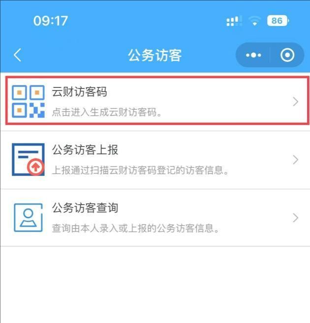 1.生成“云财访客码”,并把访客码截图发送给访客。