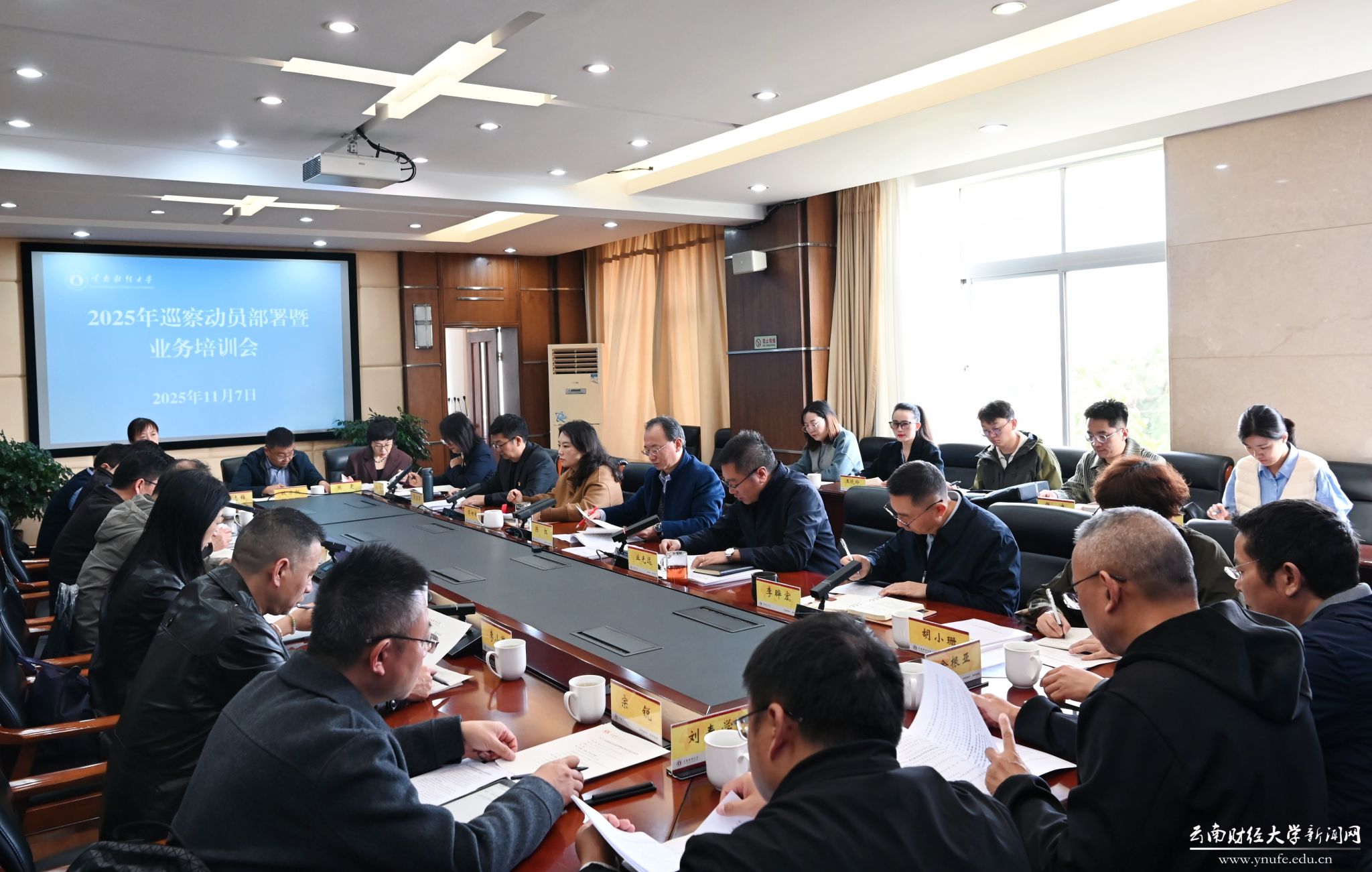 在动员部署会后的业务培训会上,校纪委副书记、纪检监察处处长李晔宏就巡察工作纪律提出要求。经济学院党委书记杨雯结合参加校内巡察工作经历作经验交流及业务培训。