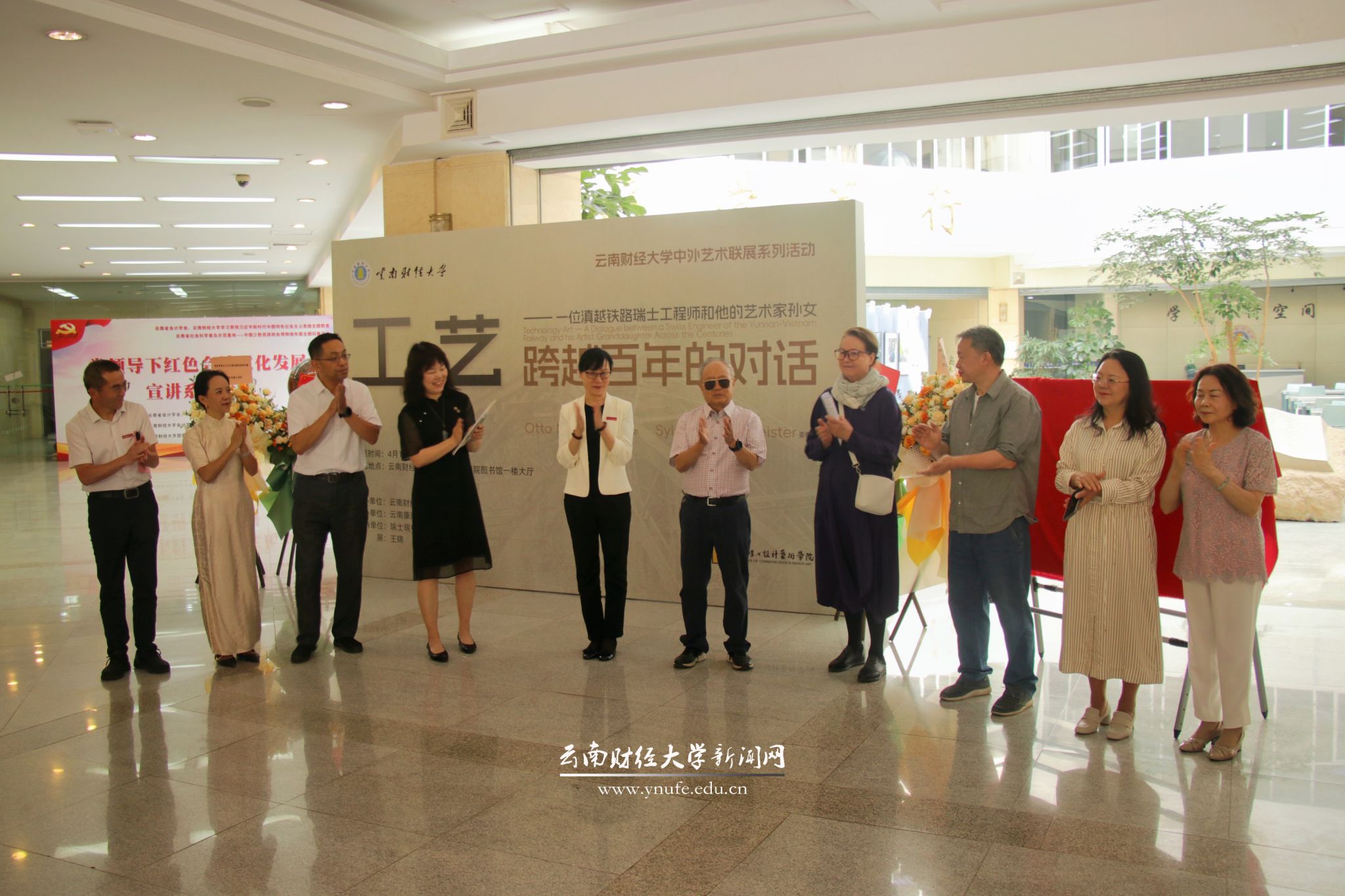 On April 15, Yunnan University of Finance and Economics (YUFE) held the “Craftsmanship·Artistry: A Century-Long Dialogue Between a Swiss Engineer of the Yunnan-Vietnam Railway and His Artist Granddaughter” exhibition at the South Campus Library. Liang Gongqing, former Chairman of the Yunnan Federation of Literary and Art Circles, attended the exhibition and announced its opening. Wang Jianying, Party Secretary of YUFE, also attended and viewed the exhibition.