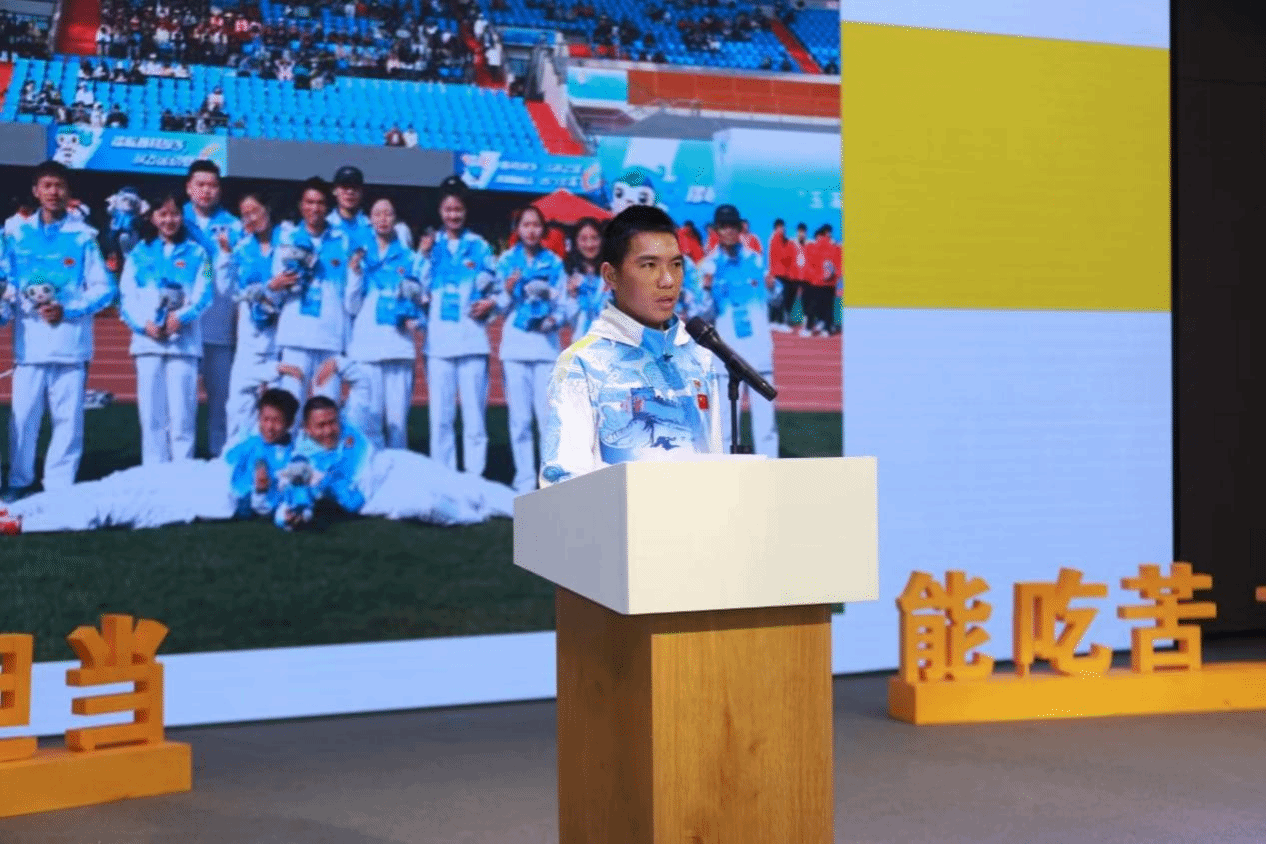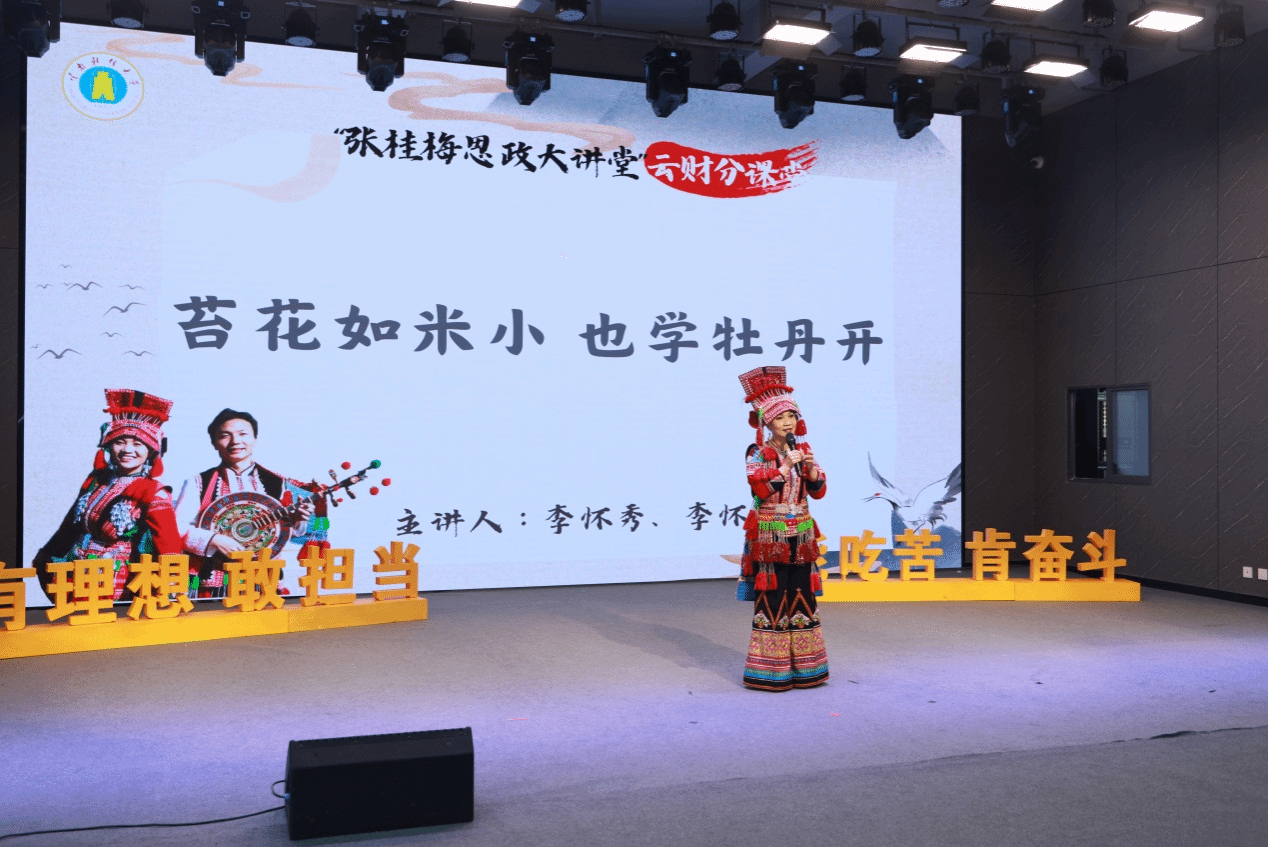At the One-Stop Student Service Center, the seventh lecture of the Zhang Guimei Ideological and Political Lecture Series series was held, featuring inspiring stories from different speakers. Among them were Yang Hongqiong, a Chinese female Paralympic cross-country skier and triple gold medalist at the Beijing Winter Paralympics and a current student at YUFE; Li Huaixiu and Li Huaifu, national-level actors and inheritors of the Haicai Tune(海菜腔) intangible cultural heritage from Shiping County; and Li Chaoyan, a young lecturer at YUFE and the full marathon champion at the Rio and Tokyo Paralympic Games in the T46 category. They shared their personal journeys and struggles with the audience.