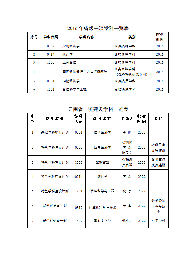省级一流学科一览表