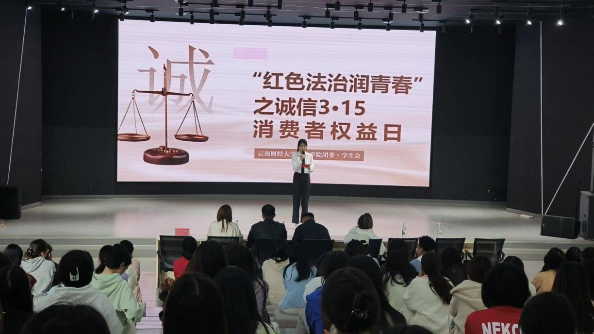 每年的3月15日是我国的消费者权益保护日,也被称为“3.15国际消费者权益日”。为普及消费者权益保护法知识,提高云财青年的法律意识,bat365在线中国官网登录入口法政学院学生会于2024年3月15日在路演大厅举办“红色法治润青春”之诚信3·15国际消费者权益日主题活动。