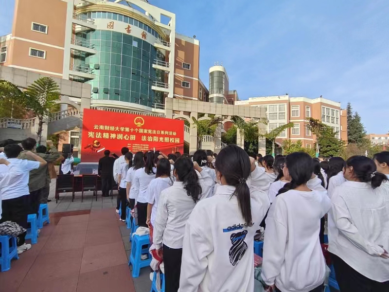2023年12月4日下午,由学校主办、法政学院承办的主题为“宪法精神润心田,法治阳光照校园”的第十个国家宪法日系列活动在南院博源广场隆重举行。
