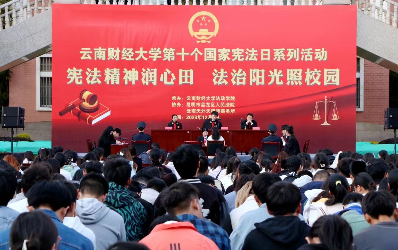 2023年12月4日下午,由学校主办、法政学院承办的主题为“宪法精神润心田,法治阳光照校园”的第十个国家宪法日系列活动在南院博源广场隆重举行。