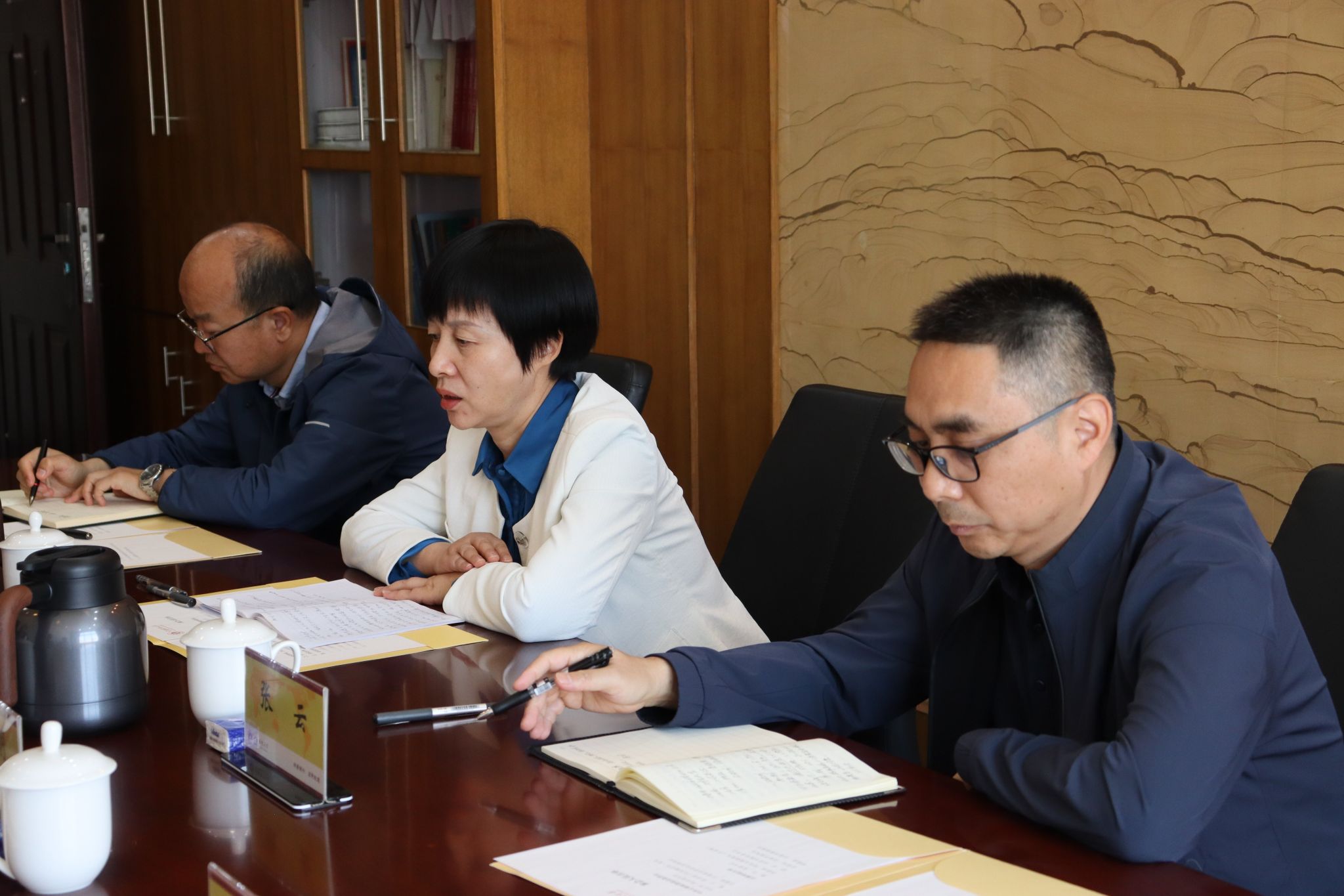 为推进落实省委政法委、省法学会与学校签订的三方合作协议,6月14日,省委政法委政治部主任毛亚芳,队伍建设处处长张云,云南省法学会会员部部长王福松一行到学校商讨相关合作事宜,调研“共建法学院”推进情况。