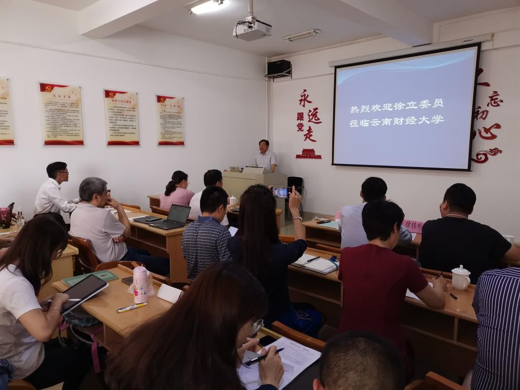 受bat365官网科学技术处邀请,现挂职云南省委教育工委委员、云南省教育厅党组成员的第二十批博士服务团团长徐立于7月3日上午做客bat365官网“云财大讲坛”,为云财师生带来讲座《新时代财经大学如何加强学科建设》。校党委委员、校长助理赵昶,科学技术处处长王林,法学院教师和部分研究生参加讲座。讲座由法学院院长佴澎主持。