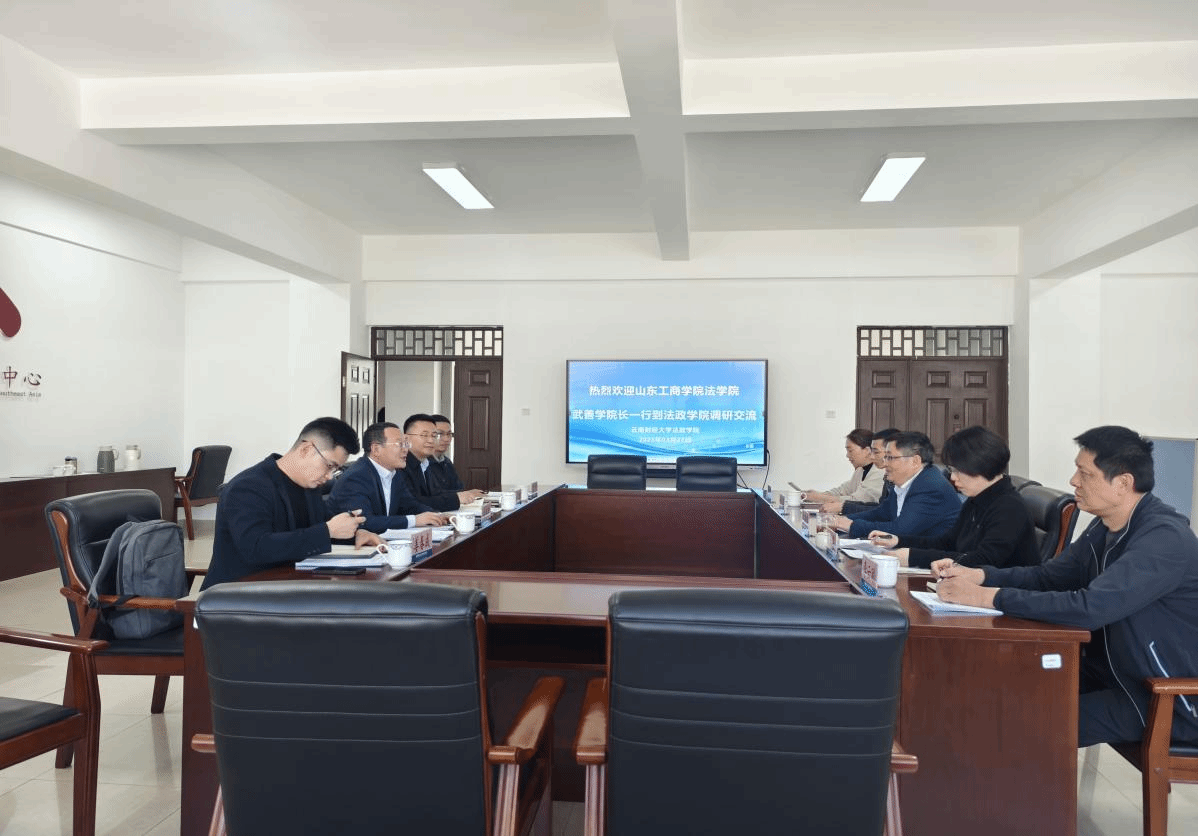 3月27日,山东工商学院法学院武善学院长率队到法政学院开展调研交流。法政学院院长石现明、副书记张吟竹、副院长刘新星、国际事务与国际关系系主任马银福、研究生科科长杨艳、教学管理科科长李云刚参加座谈。