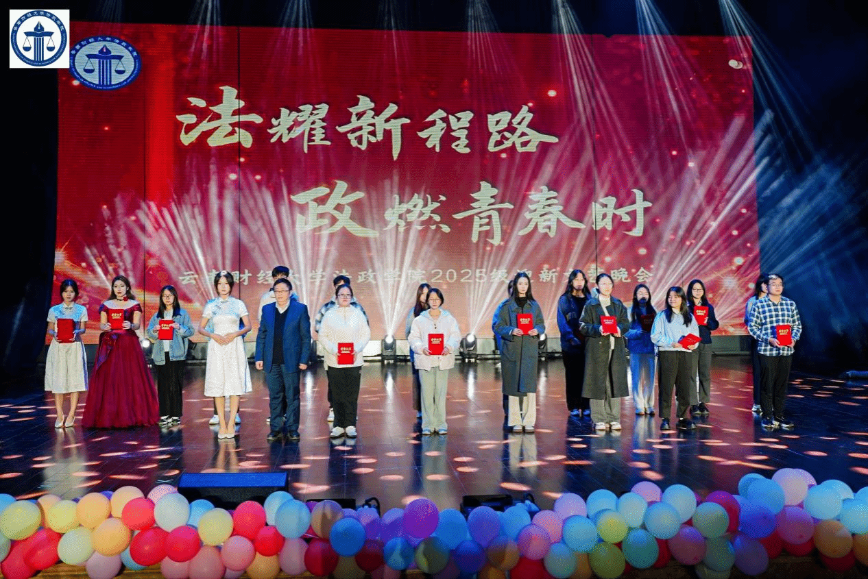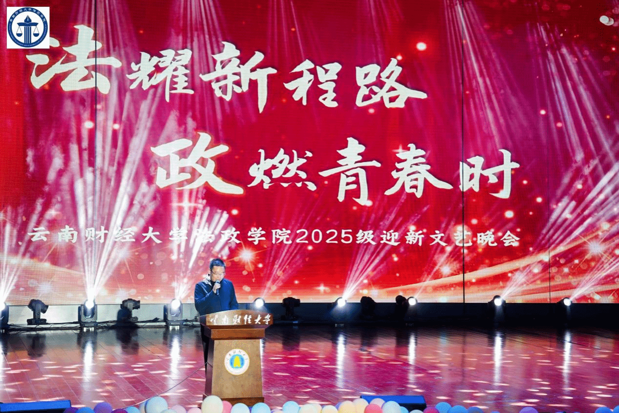 为热烈欢迎2025级新生加入法政学院,展现青春风采、凝聚学院活力,2025年11月15日,bat365在线中国官网登录入口法政学院“‘法’耀新程路,‘政’燃青春时”2025级新生迎新文艺晚会盛大举办。bat365在线中国官网登录入口党委委员、纪委书记、监察专员业光远,法政学院院长石现明,原法政学院党委书记谢维华,学校学生服务中心专职副主任兼学生工作部副部长王帅,学校大学生艺术教育中心主任、副处级辅导员杨波,法政学院党委副书记兼纪委书记张吟竹,法政学院副院长刘新星,学院部分教职工,校院两级各学生组织代表及学院2025级本科、研究生新生共同参与此次活动。