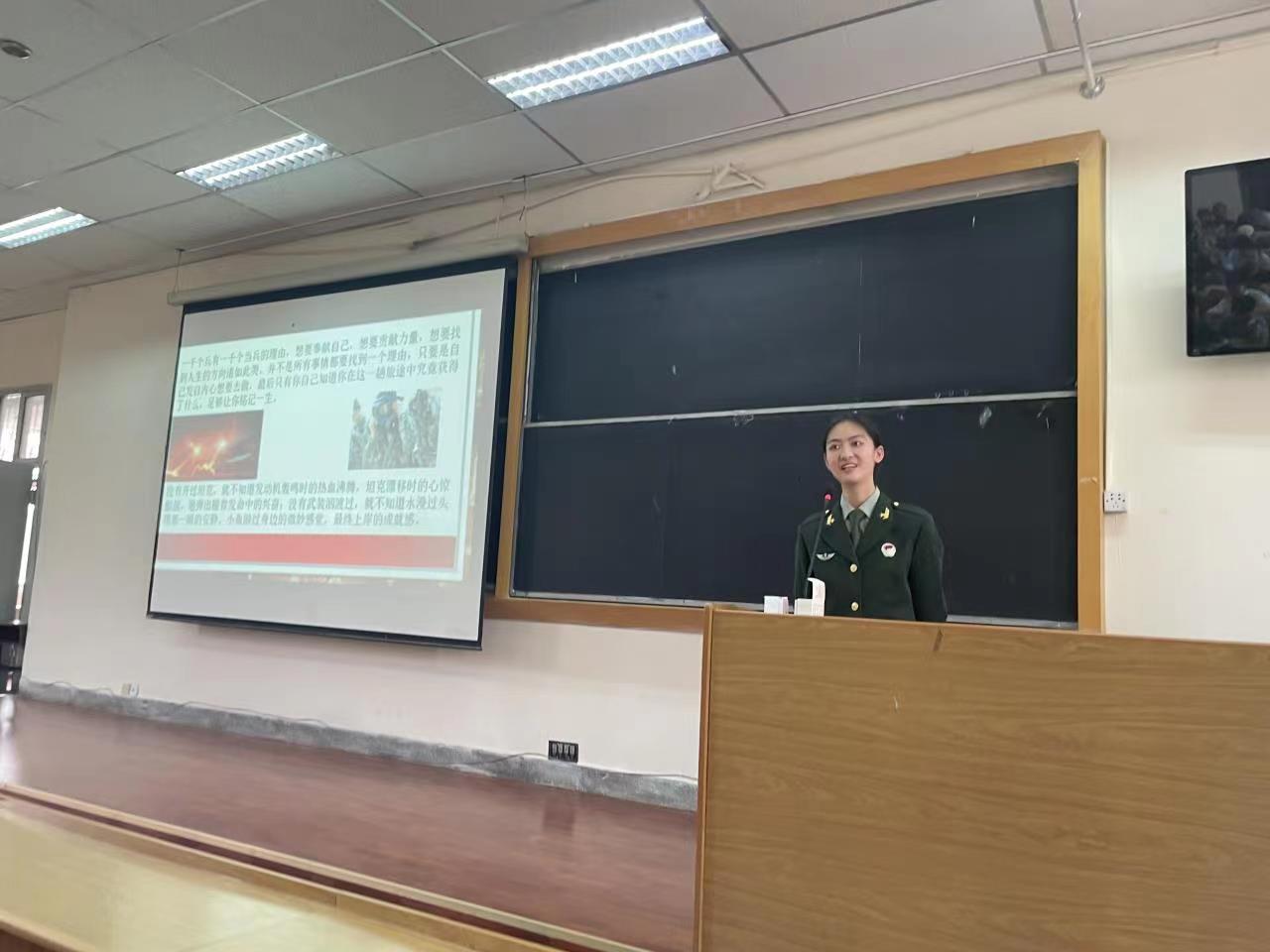 宣讲会上,三位宣讲员分享军旅生活,讲解大学生参军入伍优惠政策,燃起青春学子的戎装梦。同学们聚精会神地倾听宣讲员的热血回忆,不时响起阵阵掌声。从“为什么要当兵”到“当兵的一千个理由”,从“大学生参军入伍优惠政策”到“退伍优待”等,话题一个接一个,气氛一次又一次被点燃,让同学们认识到参军入伍不仅是祖国的感召,更是一份光荣的责任与义务。谈到当兵感受时,优秀退役大学生黄勇自豪地说“第一次紧急集合、第一次实弹射击、第一次答到、第一次立功受奖、第一次执行任务……它们终将成为你一生最为骄傲的回忆!去部队,你将收获一生中最骄傲的回忆!”