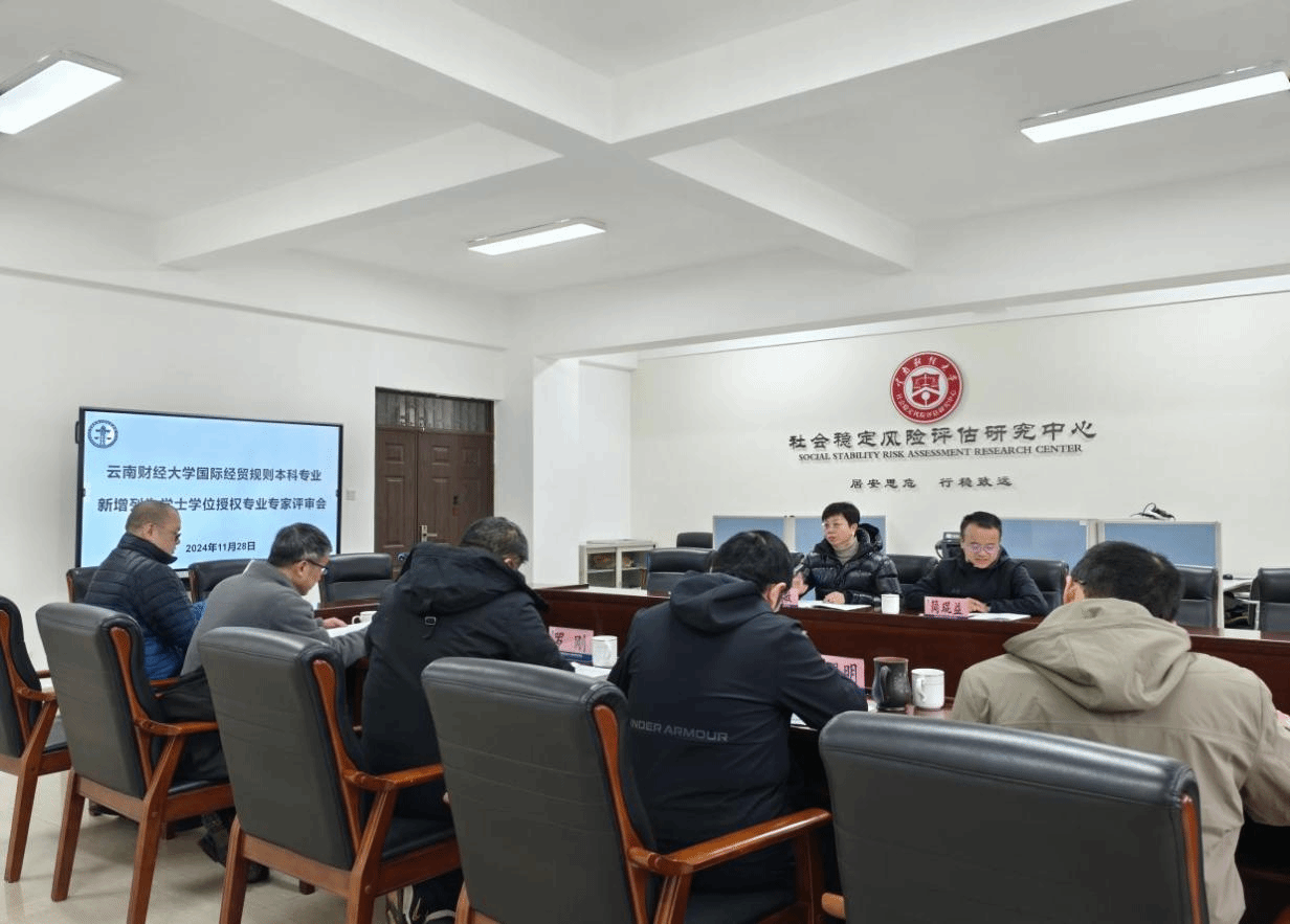 2024年11月28日,法政学院在博远楼313会议室召开了国际经贸规则专业新增列为学士学位授权专业专家评审会。本次评审会由云南大学罗刚教授担任评审专家组组长,专家组成员包括云南大学牟军教授、昆明理工大学谭民教授、昆明理工大学王嘎利副教授、bat365在线中国官网登录入口石现明教授。法政学院副院长简琨益、国际经贸规则专业负责人许敏出席会议。