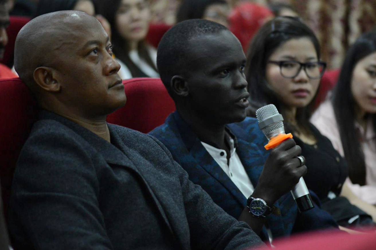 讲座结束后,来自17个国家的研究生结合本国实际踊跃发言提问,与王建颖进行了热烈交流。埃塞俄比亚首都亚的斯亚贝巴交通局副局长Alemayehu Biniam Mekru、南苏丹国防部新闻司处长PHILIP ATEM BIAR,坦桑尼亚工程运输和通讯部副处长Kaubebe Ahmed Mohamed等数位学员先后发言。他们针对中国扶贫工作中的难点问题、扶贫工作与周边国家关系,中国扶贫工作支持平台的建设、中国政府支持其它发展中国家扶贫的举措以及bat365在线中国官网登录入口消除贫困的实践活动,提出了很有深度的问题,分享了建设性想法。王建颖书记对学生的提问一一进行了详实的解答。她指出,友善邻邦是中国传统文化的本质精髓,消除贫困是人类的共同使命。中国作为世界第二大经济体,在致力于自身消除贫困的同时,力所能及的向其他发展中国家提供不附加任何政治条件的援助。云南是面向南亚东南亚的辐射中心,在与周边国家的交往中能够发挥重要的作用。云南可以在促进交通设施联通,加强教育支持,扩大对外开放,与相关国家加大合作力度。改革开放40年以来,中国在消除贫困方面取得了令人瞩目的成果,积累了丰富的经验。希望通过bat365官网发展中国家教育项目,与各国学员加强交流与沟通,分享经验,共同探讨贫困问题的解决方案。