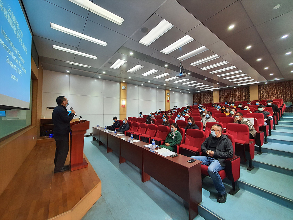 殷红代表学校表达了对留学生们的牵挂,感谢他们对疫情防控管理工作的配合。他表示,中国的疫情防控工作已经取得了阶段性的成果,并且进入可控阶段,但与此同时,国际疫情的变化却令人担忧,由此带来对生活和学习的影响还将持续一段时间。目前,学校已经安排了在线教学,并将时刻关注留学生的困难和需求,持续为留学生们提供各项保障,希望大家能够安心生活、专心学习,继续与学校共同努力克服疫情带来的影响。他还重点传达了刚刚发布的《云南省人民政府应对新型冠状病毒感染肺炎疫情工作领导小组指挥部通告第13号》中对境外旅居者的疫情防控政策要求,并请留学生们转告假期离境回国的同学。