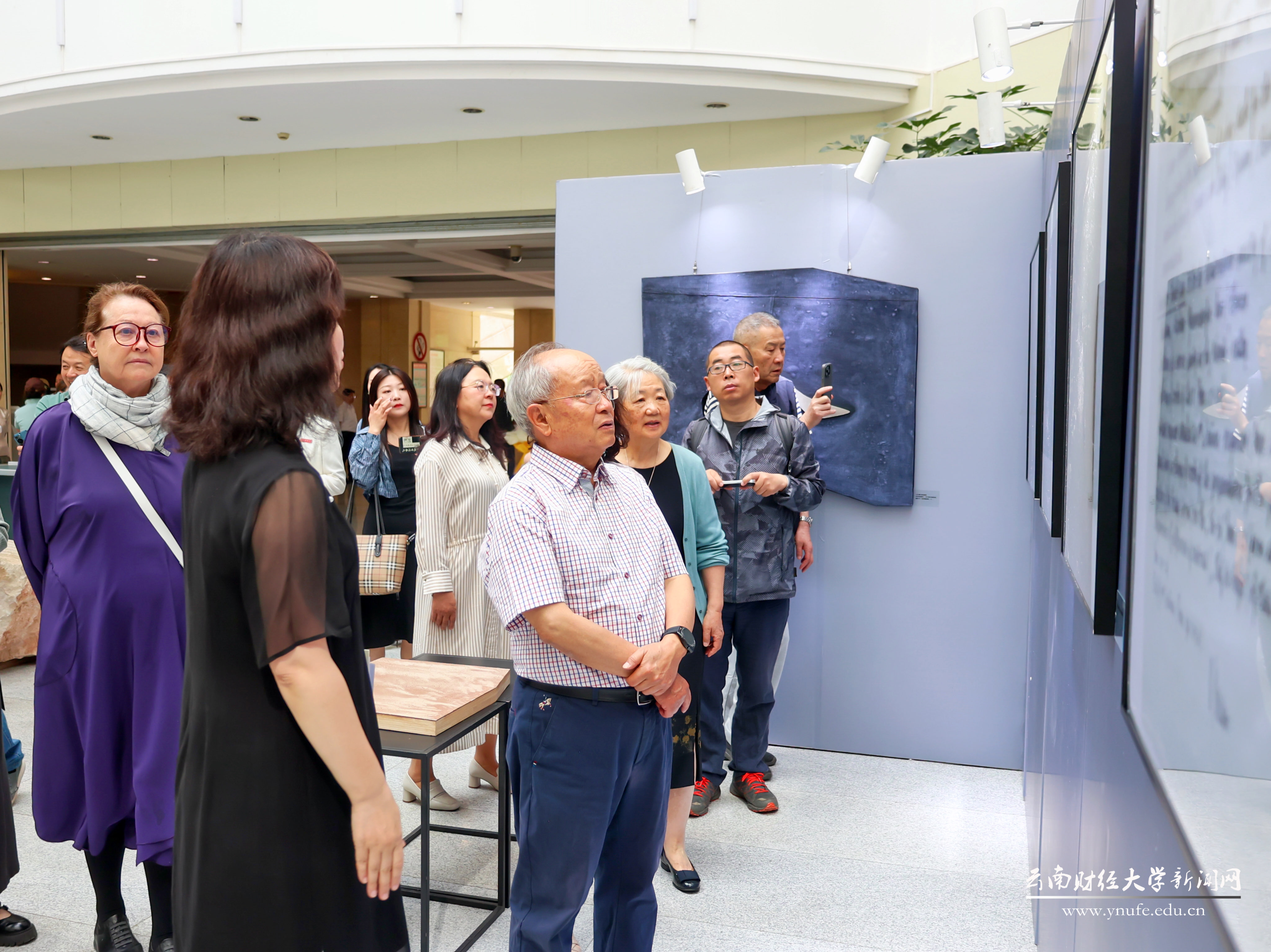 4月15日,bat365在线中国官网登录入口中外艺术联展系列活动之“工·艺——一位滇越铁路瑞士工程师和他的艺术家孙女跨越百年的对话”艺术展在南院图书馆举行。原云南省文联主席梁公卿出席展览并宣布展出开幕,校党委书记王建颖出席并观看展览。