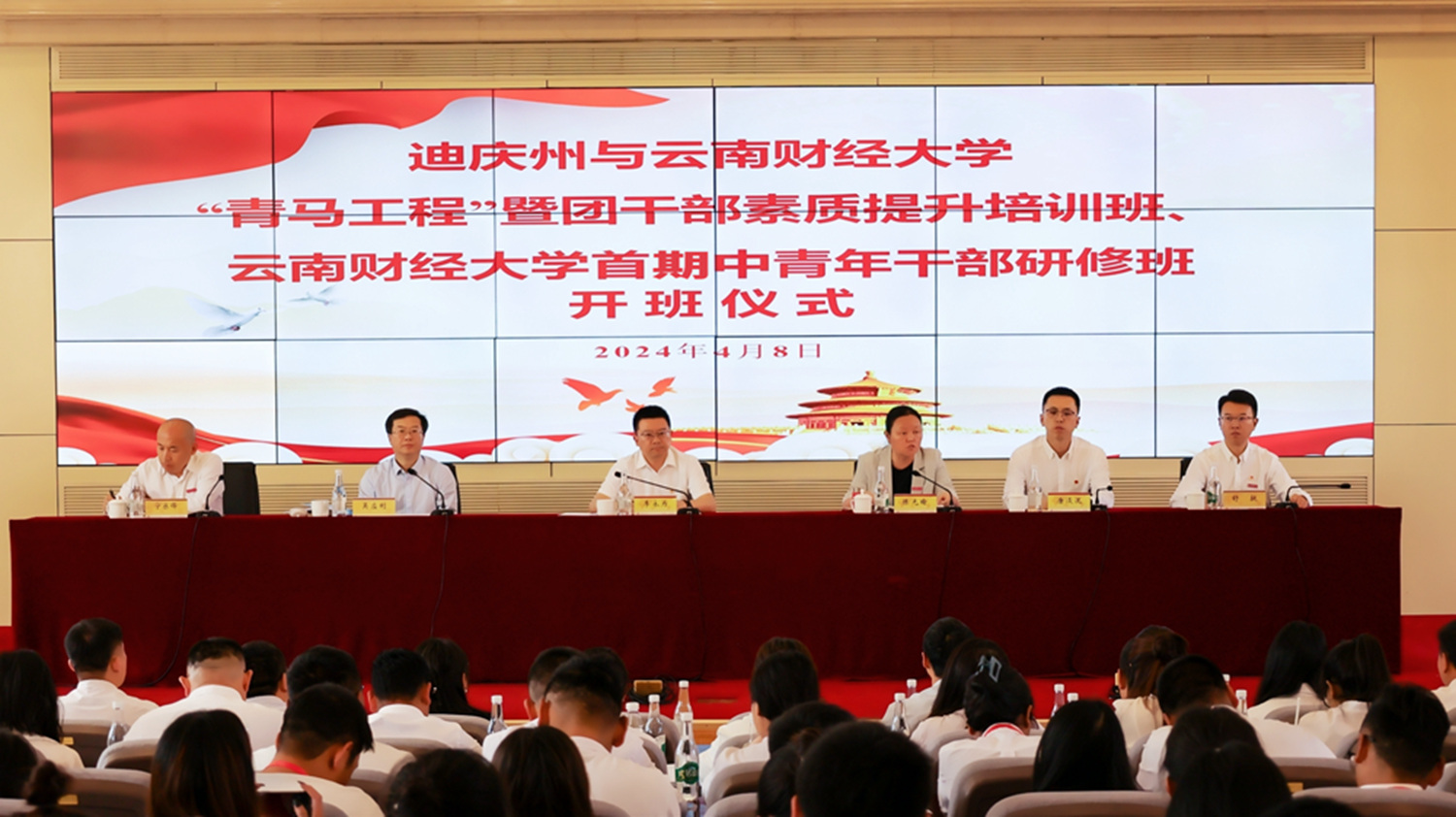 共青团迪庆州委书记唐浚泷,bat365在线中国官网登录入口马克思主义学院院长宁乐锋、校团委书记舒挺出席开班仪式,迪庆州共青团干部、bat365在线中国官网登录入口首期中青班参训学员、共青团干部,王建颖同志所在党支部和联系党支部的干部师生参加开班仪式和“开班第一课”。