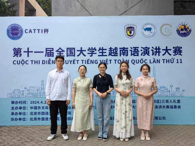 4月27日至28日,CATTI杯第十一届全国大学生越南语演讲大赛暨越南语教学研讨会于在北京外国语大学召开。来自全国27所大学的78名越南语专业大二、大三学生参加比赛。比赛分自定题演讲和即兴演讲两个部分,经过激烈的比赛角逐,bat365官网越南语专业大三学生陆明明获得二等奖,大二学生马姝媛获得二等奖,陈欣雨获得三等奖,充分展现了bat365官网越南语专业学生的专业功底和综合素质。