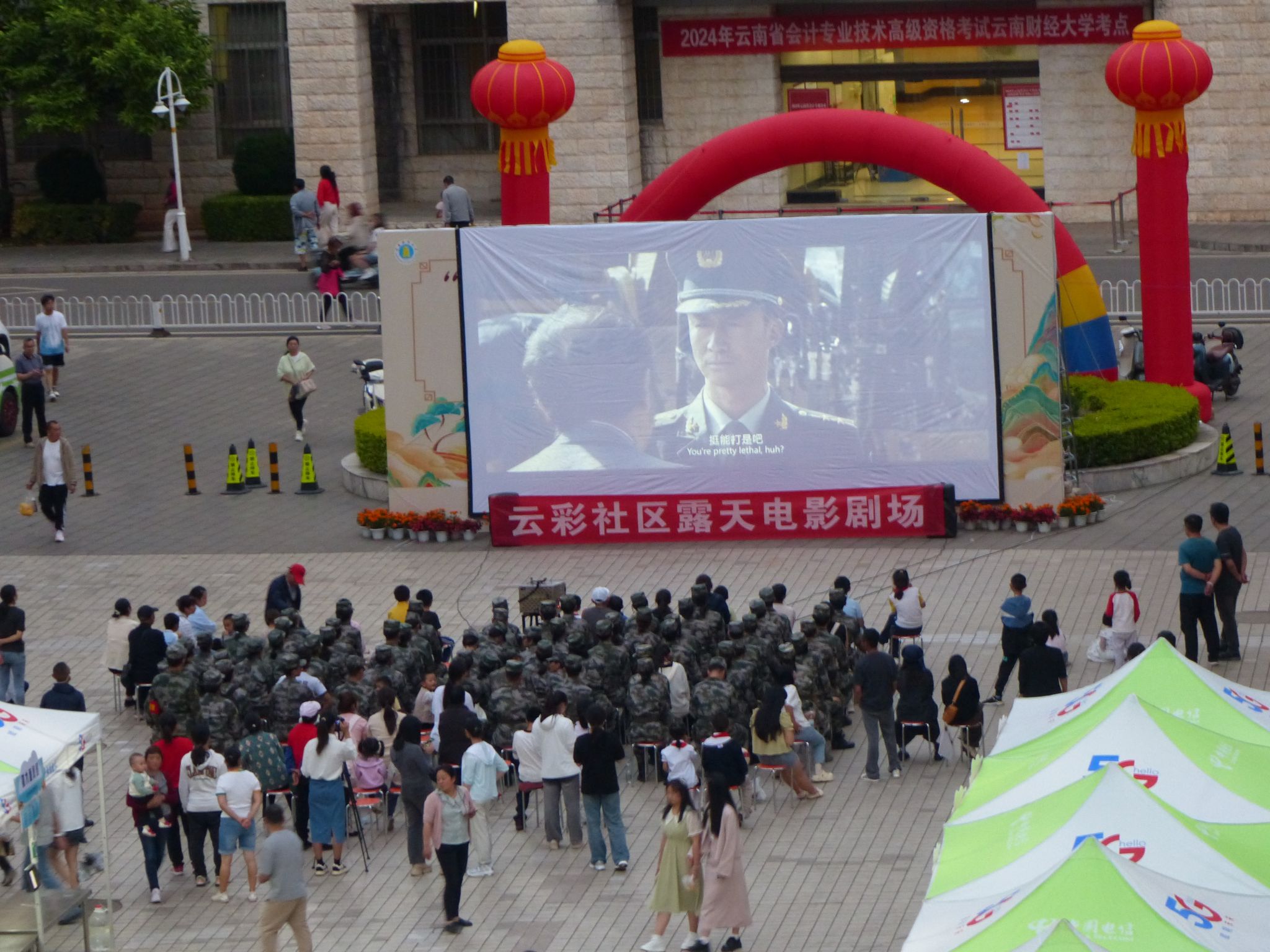 5月17日晚19:30,在荟华广场放映的云彩社区露天电影剧场《战狼2》,情节扣人心弦,爱国情怀在每位观众心里深深扎根。