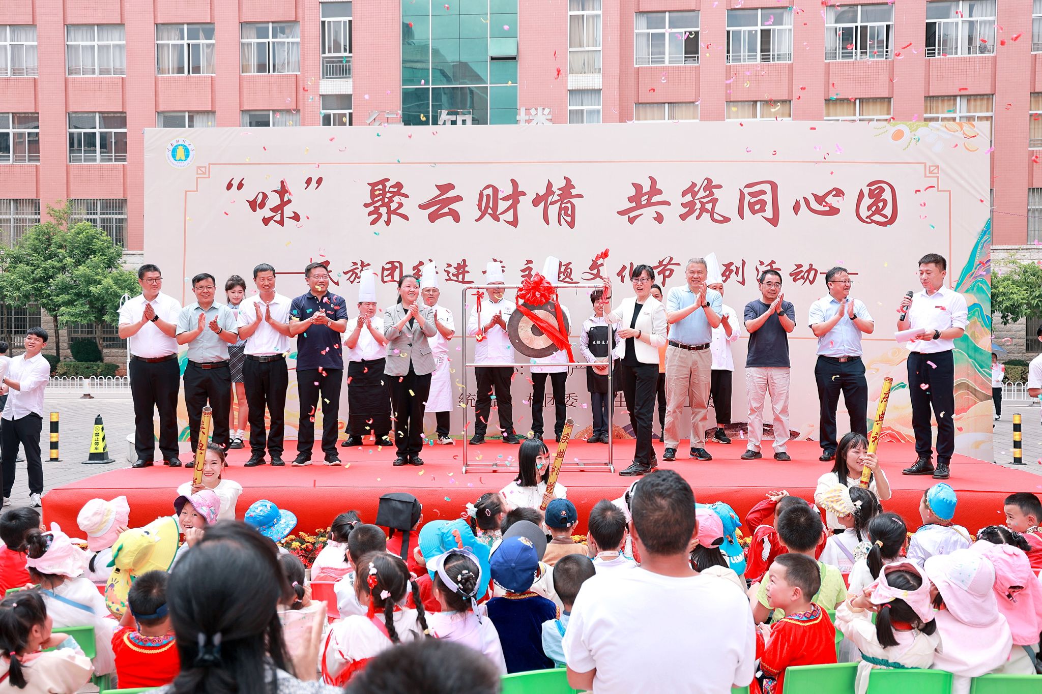 5月17日上午11:45,在师生的期待瞩目和热闹欢乐的氛围中,王建颖为美食节鸣锣开场,bat365在线中国官网登录入口“‘味’聚云财情 共筑同心圆”民族团结进步主题文化节系列活动正式启动。