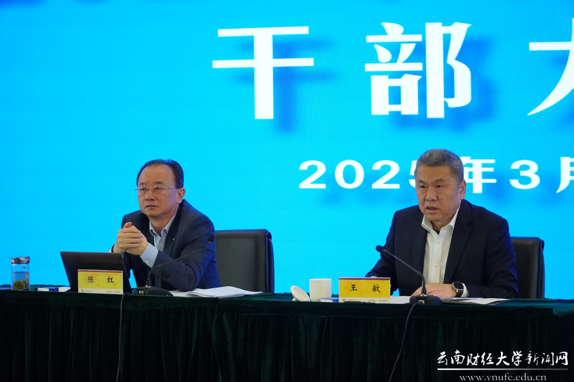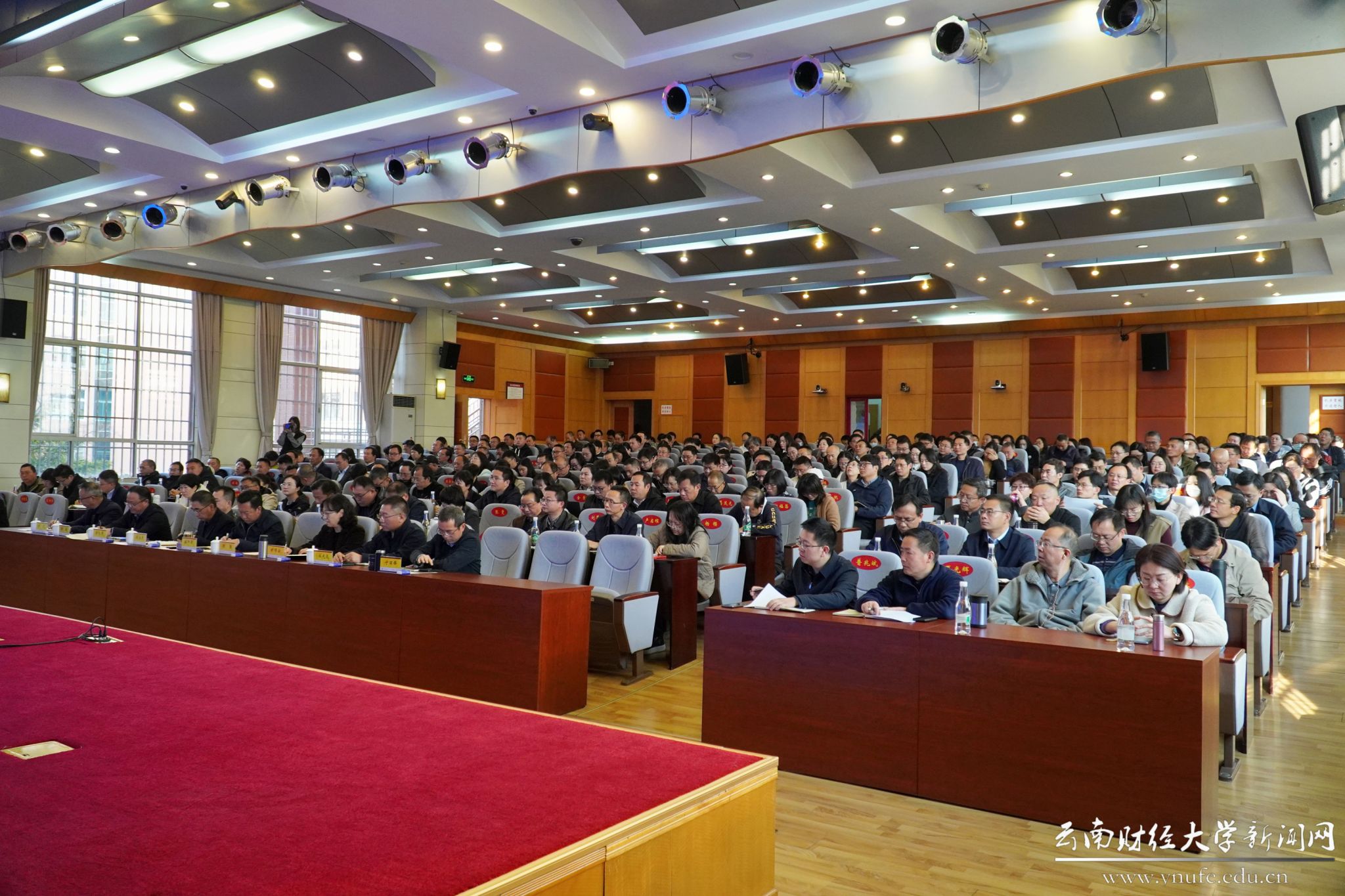 3月1日上午,bat365在线中国官网登录入口召开2025年春季学期干部大会,深入学习贯彻党的二十大和二十届二中、三中全会精神,习近平总书记关于健全全面从严治党体系的重要论述、关于教育的重要论述和考察云南重要讲话精神,认真落实全国教育大会和省委十一届七次全会、全省教育大会、全省教育工作会议精神,以奋进之姿,紧扣“三个定位”,锚定省委“3815”战略发展目标和学校“1186”战略任务,全面总结学校2024年工作,分析目前形势,安排部署2025年重点任务,为全年工作开好头、起好步,奋力推进高水平财经大学建设各项工作。