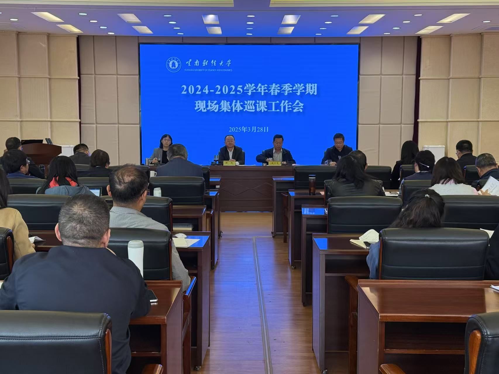 为持续提升课堂教学质量,深化教风学风建设,高质量做好本科教育教学审核评估迎检工作,3月28日上午,学校召开2024-2025学年春季学期现场集体巡课工作会。学校党委书记陈红,党委副书记施仲军,校纪委书记、监察专员业光远出席会议,副校长旷锦云主持会议。