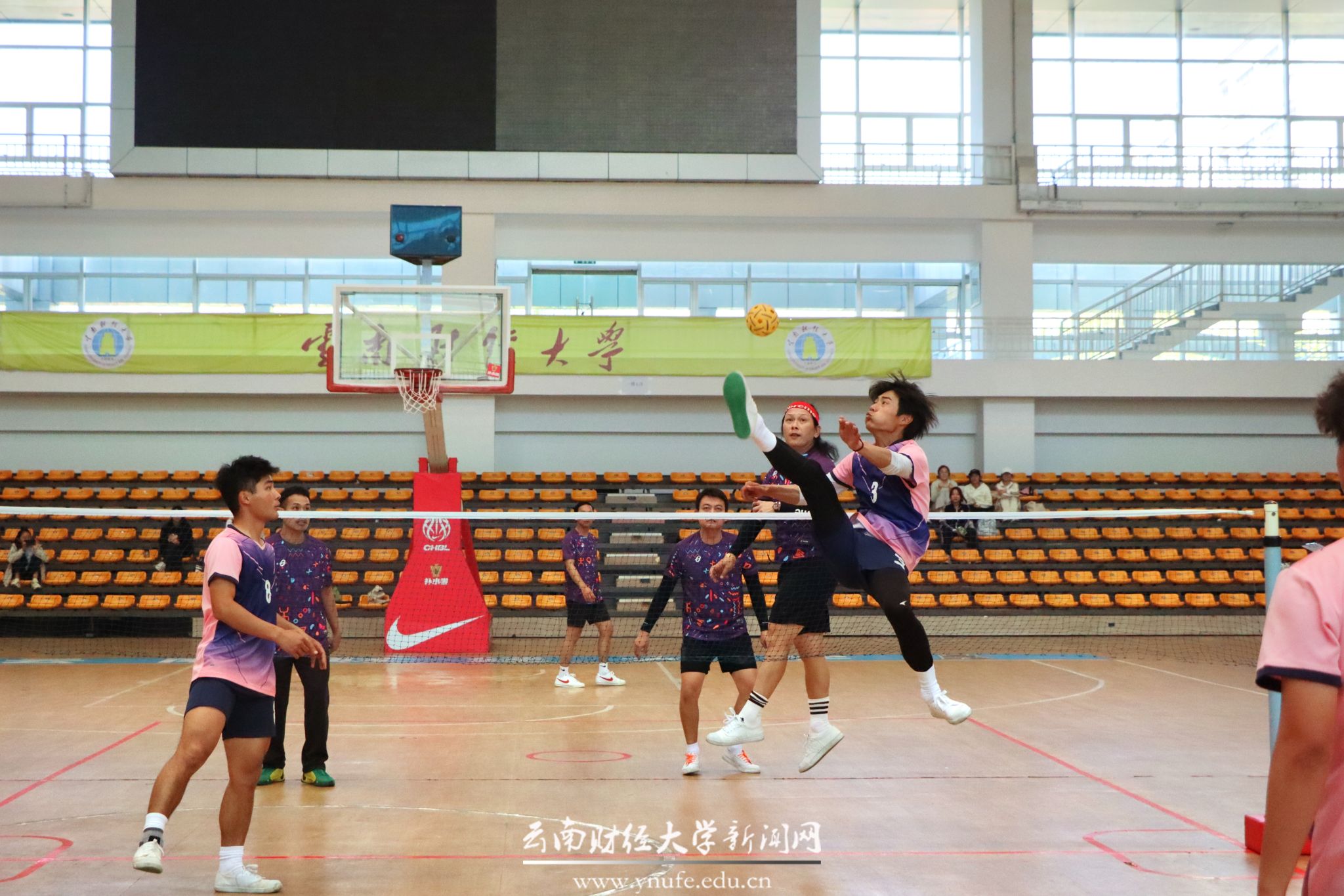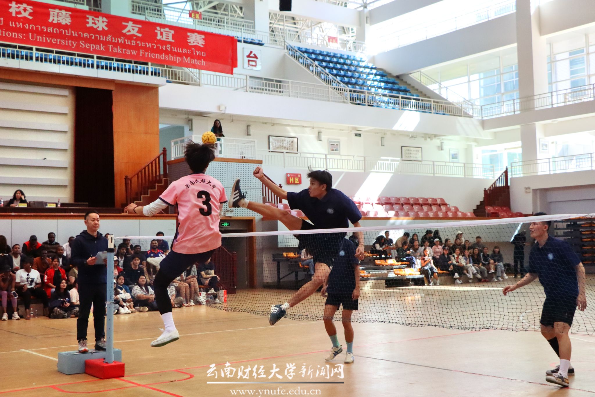 赛事核心环节为藤球团体循环赛,泰国碧差汶皇家大学、云南民族大学、bat365在线中国官网登录入口三支队伍展开激烈角逐。运动员们腾挪攻防,尽显“脚踢排球”的力与美。赛事期间,同步举办了篮球、排球、乒乓球友谊赛等交流活动。
