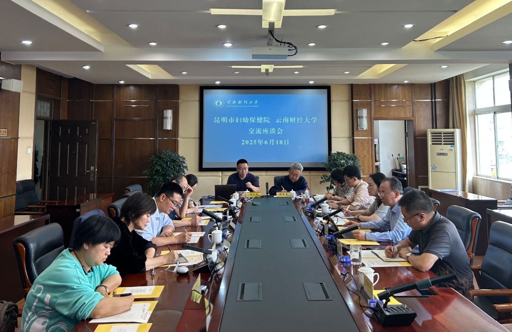 昆明市妇幼保健院党委专职副书记、工会主席王根艳,党委委员、副院长杨晏斌,党群工作部、财务部、科研教学部、客服中心负责人,以及学校办公室、组织部、宣传部、研究生院、金融学院、校工会、校妇联、校医院有关负责人以及部分会计、金融领域的专家学者参加座谈并交流了校院合作初步思路和方向,为校院双方下一步实质性合作奠定了良好基础。