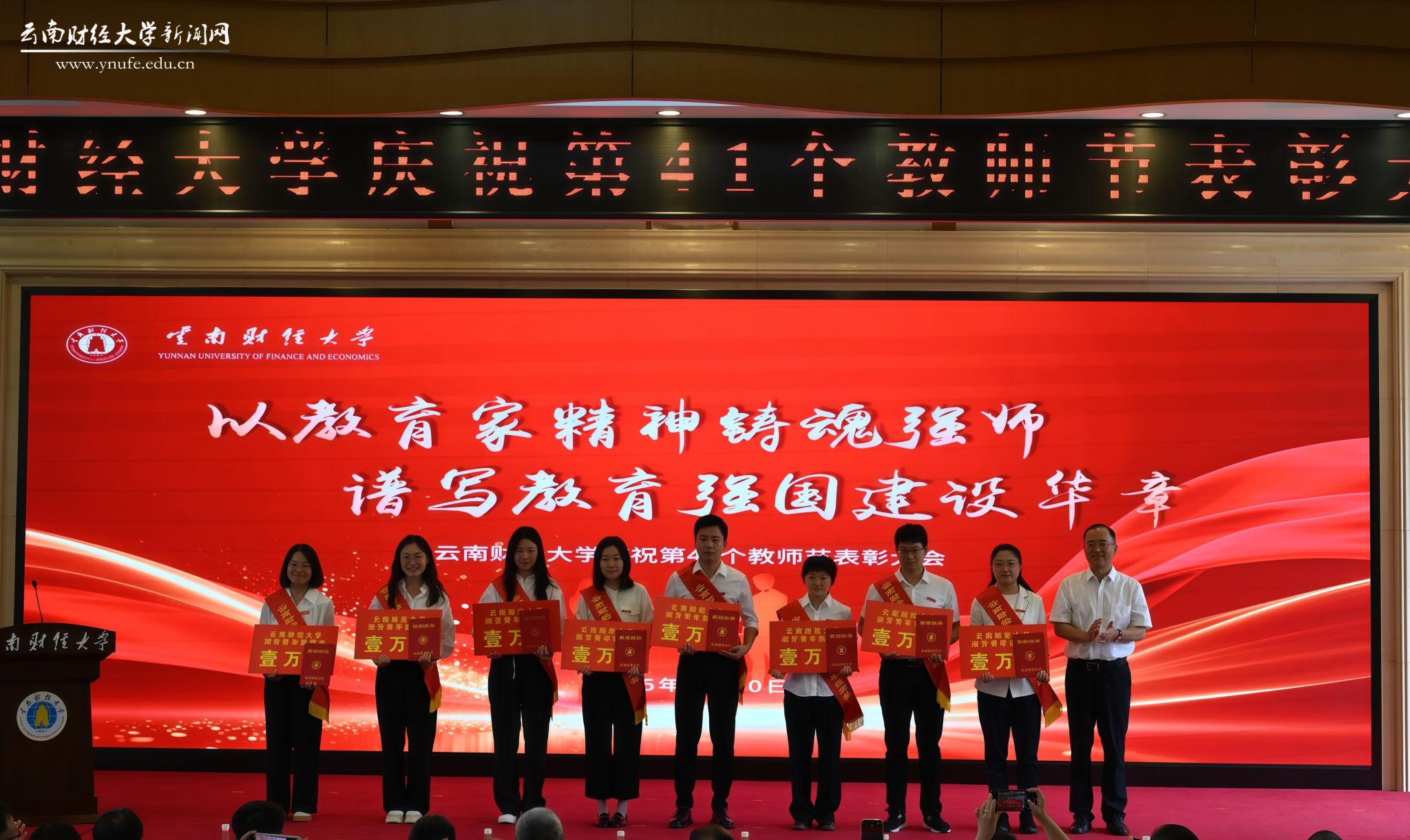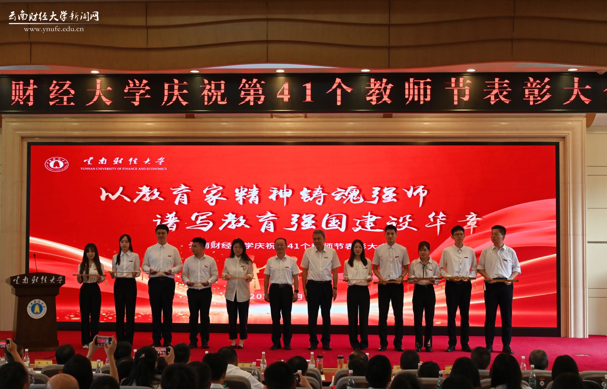 陈红寄语全体教职工:一是以教育家精神为引领,做新时代的“大先生”;二是以主人翁姿态投身发展,做学校建设的“主力军”;三是以奋斗者精神追求卓越,做事业发展的“追梦人”。他强调,要以伟大抗战精神为激励,以“为党育人、为国育才”的初心使命,以“功成不必在我”的境界和“功成必定有我”的责任担当,奋力谱写具有鲜明财经特色的高水平大学建设新篇章,为教育强国、教育强省建设作出云财贡献。