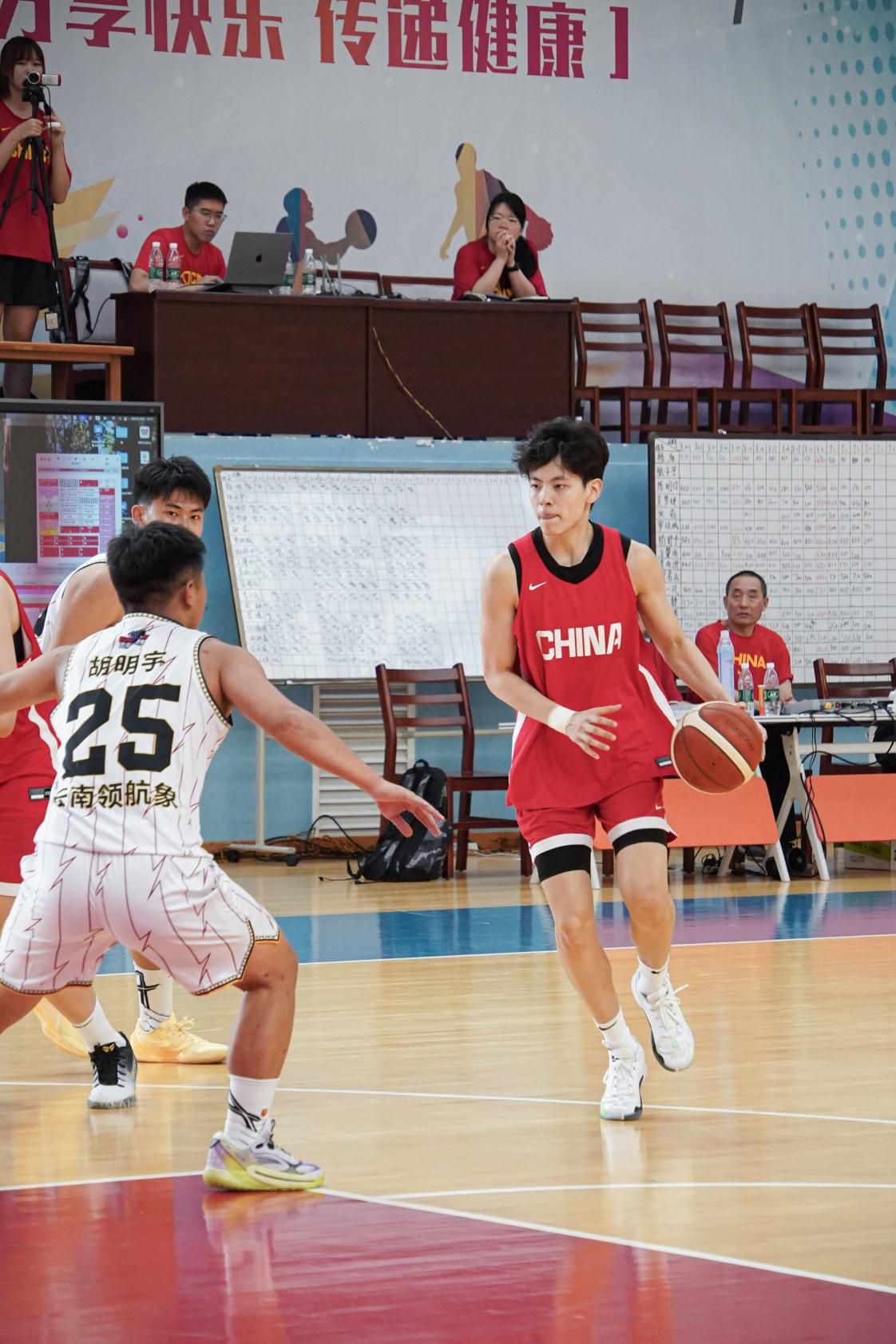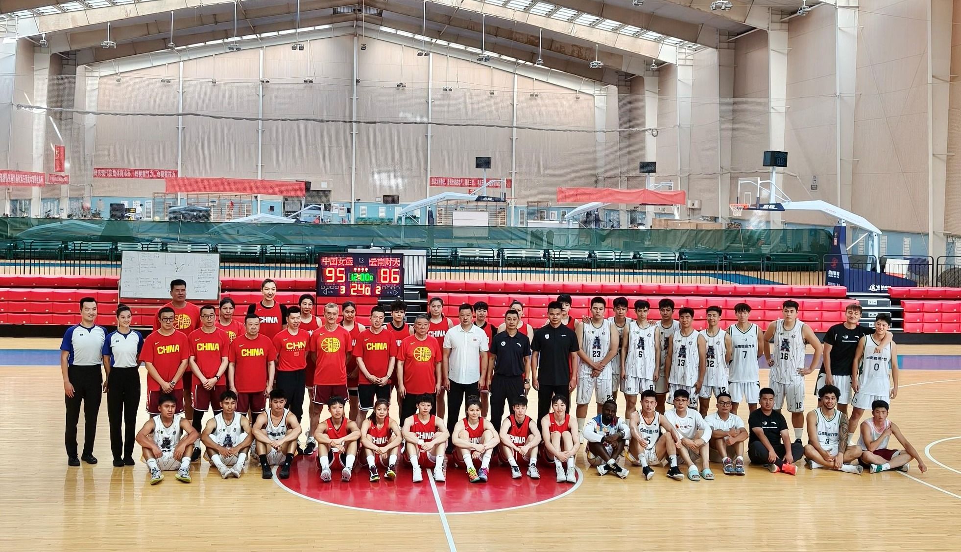 近期,在昆明海埂基地球馆,bat365官网男篮两次迎战特殊对手——正在夏训的中国女篮国家队。面对平均身高并不逊色、却更快更灵活的国家队,男篮小伙子们以“男队速度+对抗”全力陪练,也把bat365官网队员的拼搏写进国家队训练日志。