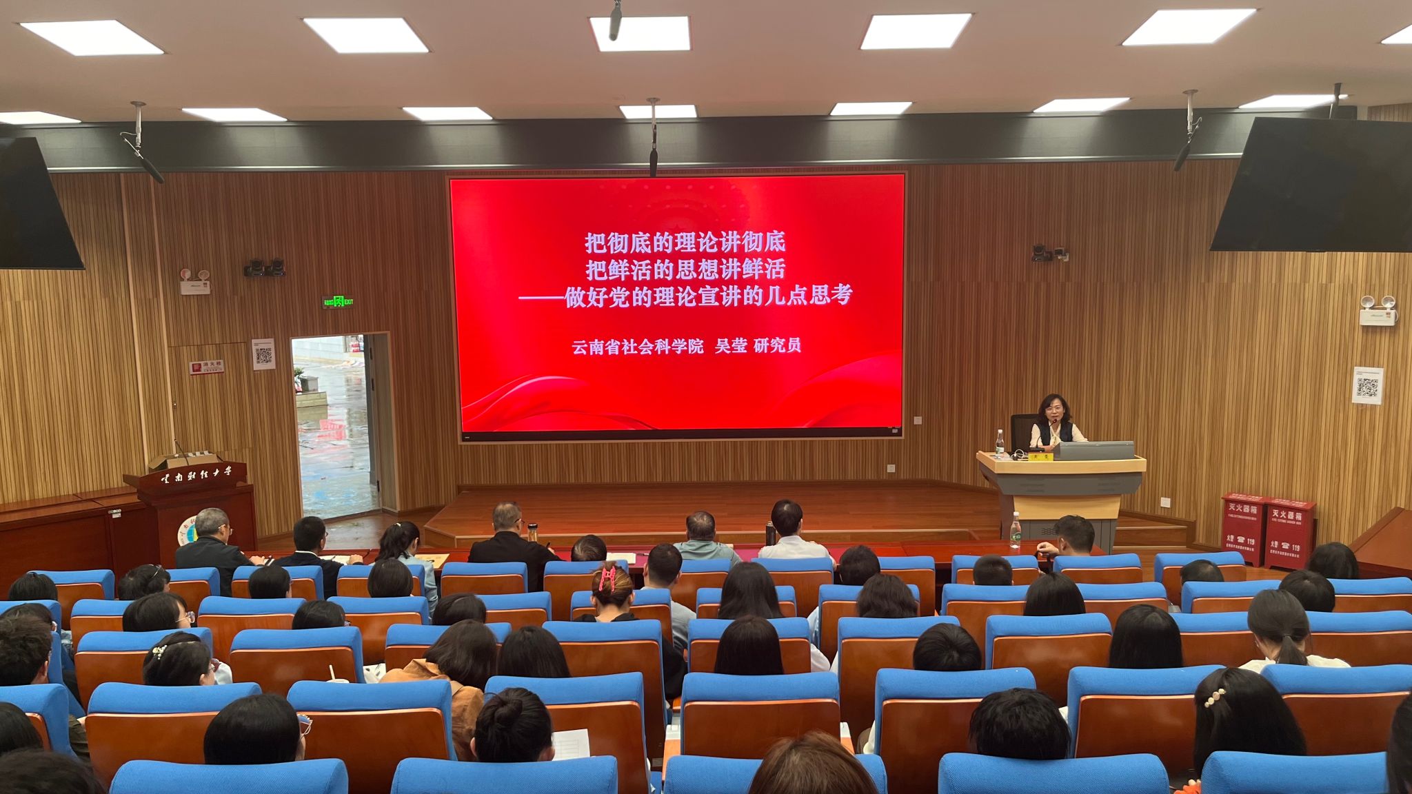 为进一步提高理论武装宣讲团成员的宣讲能力,7月5日下午,学校在行远楼D101报告厅举办提升理论宣讲能力专题培训。云南省社会科学院马克思主义研究院院长吴莹研究员应邀作专题辅导,校党委委员、宣传部部长寸丽锋主持培训会。