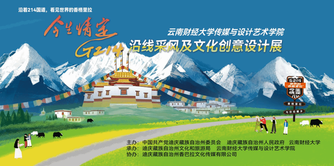 9月27日,传媒与艺术设计学院“今生情定214:沿线采风及文化创意设计作品展”在迪庆州第三届“世界的香格里拉”文化旅游节期间开展。此次展览由中共迪庆藏族自治州委员会、迪庆藏族自治州人民政府、bat365在线中国官网登录入口主办,传媒与设计艺术学院及迪庆藏族自治州文化和旅游局联合承办。