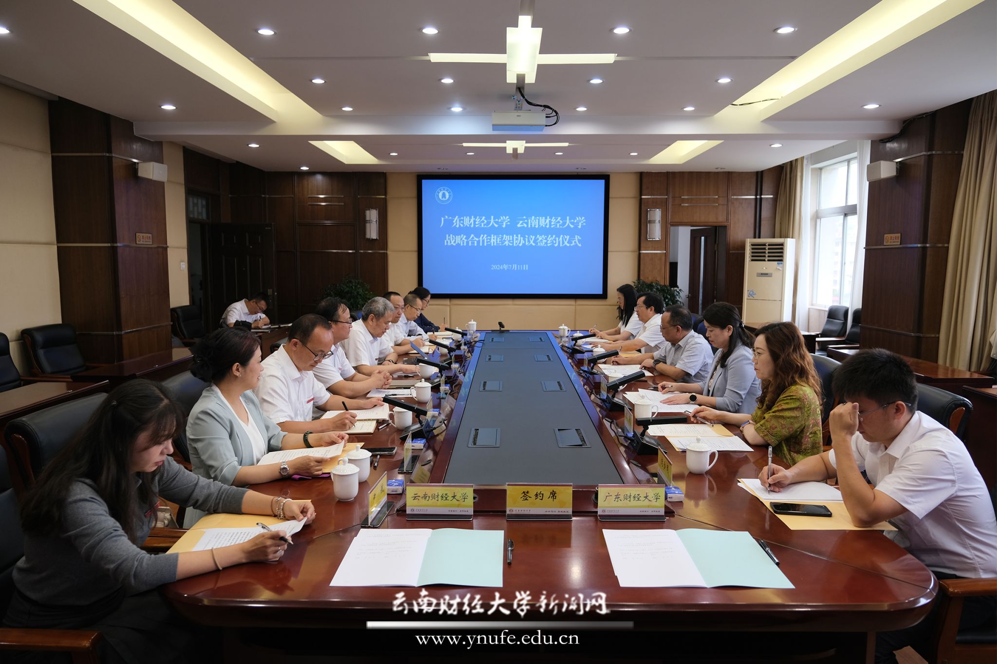 7月11日上午,学校与广东财经大学在致远楼506会议室举行座谈交流。广东财经大学党委副书记、校长于海峰,bat365官网党委副书记、校长王敏出席并代表双方签订战略合作框架协议。会议由校党委委员、副校长颜明主持。