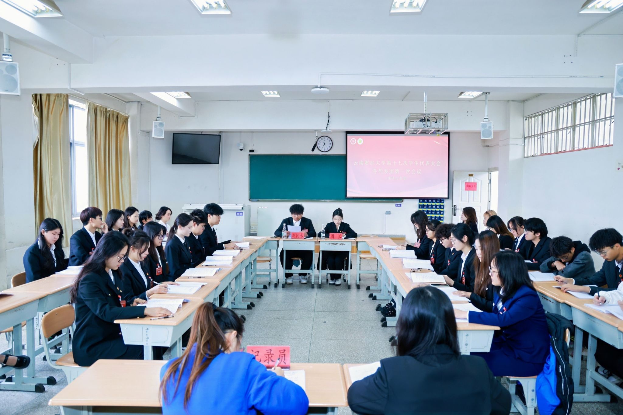 校党委委员、组织部部长李姗姗,学生处处长(学生工作部、武装部部长)沙磊,宣传部副部长李晓霞,统战部副部长赵莎娜,研究生院综合办公室主任兰剑等出席开幕式。全体专职团干部及大会代表参加大会。
