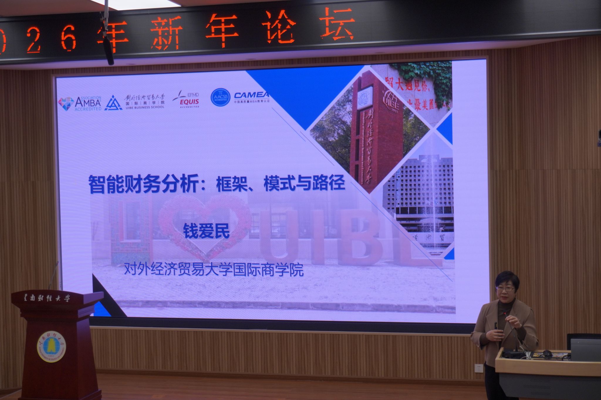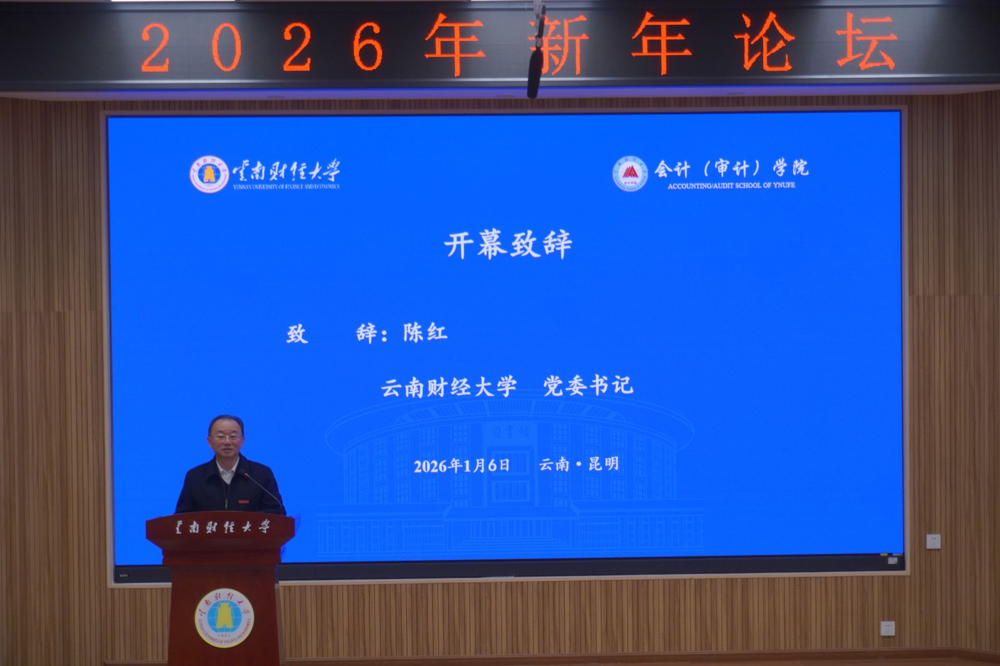1月6日,“新时代·新征程:财会创新与区域经济发展”2026年新年论坛在bat365官网龙泉路校区举办。本次会议由学校主办,会计(审计)学院承办。校党委书记陈红教授致开幕词,副校长余怒涛教授主持开幕式。
