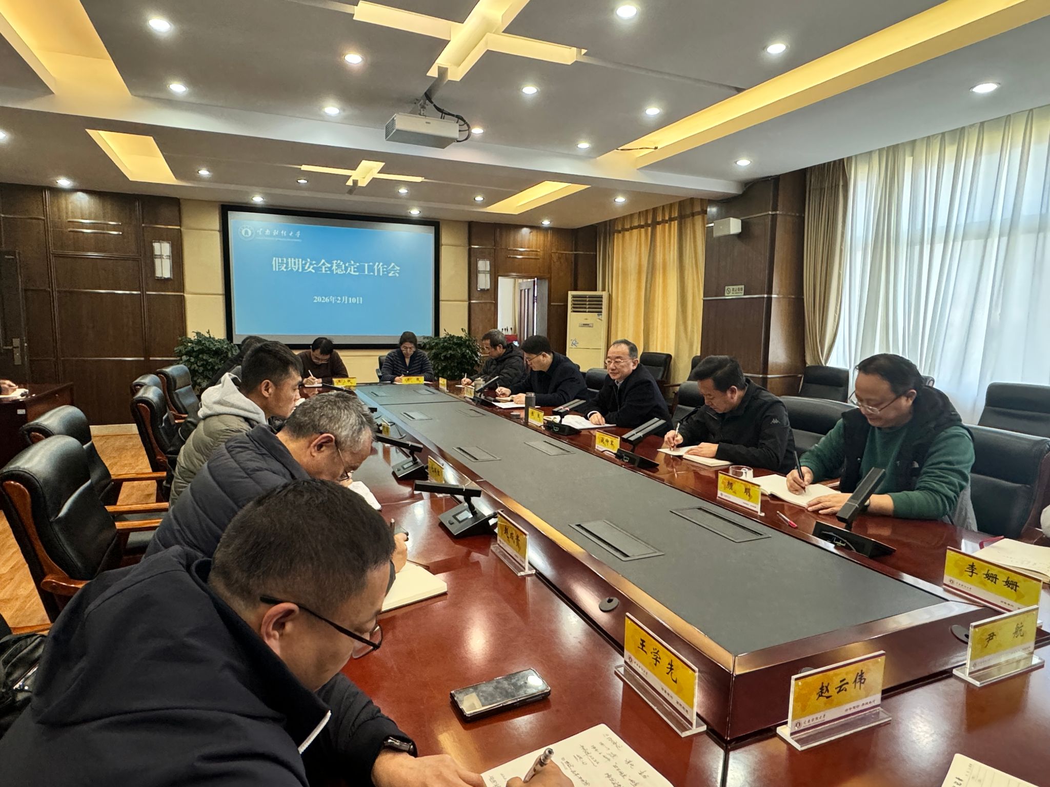 会议指出,2026年是“十五五”开局之年,各单位要持续树牢“安全稳校”理念,统筹好安全与发展,做到假期工作不停工、任务不断档,确保假期安全稳定、廉洁祥和,为2026年学校事业高质量发展开好局、起好步奠定坚实基础。