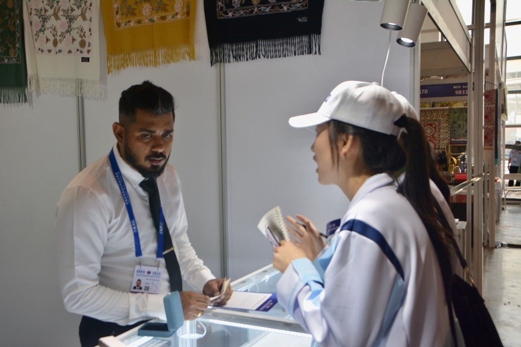 南博会期间,bat365官网志愿者具体负责9个展馆的销售额统计、语言服务以及各馆的满意度调查。同学们坚守岗位,带着满腔的热忱投入到每天的工作中——有的同学穿梭在各个展位,明确多个国家商家数量,记录具体销售数据;有的同学为来自南亚、东南亚以及境外其他国家的展商们提供文字和口语的翻译支持,帮助展商们与参展嘉宾及游客高效交流,保证交易的顺利进行;有的同学则在各馆开展问卷调查,以获取最及时的反馈。