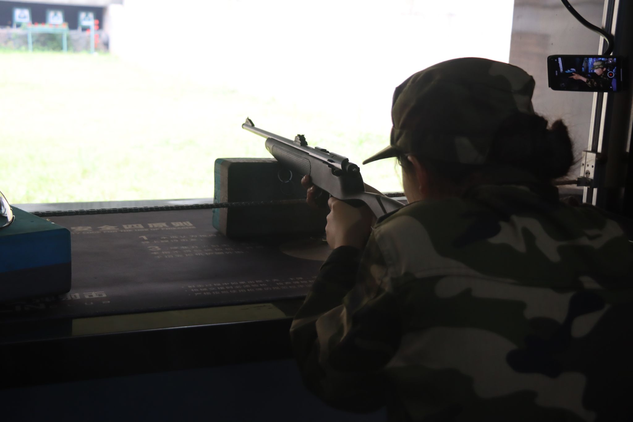 同学们有序进入到实弹射击场地,在工作人员的指导下完成射击,这对很多从未进行过实弹射击的同学来说是一次新奇、难忘的军训体验。