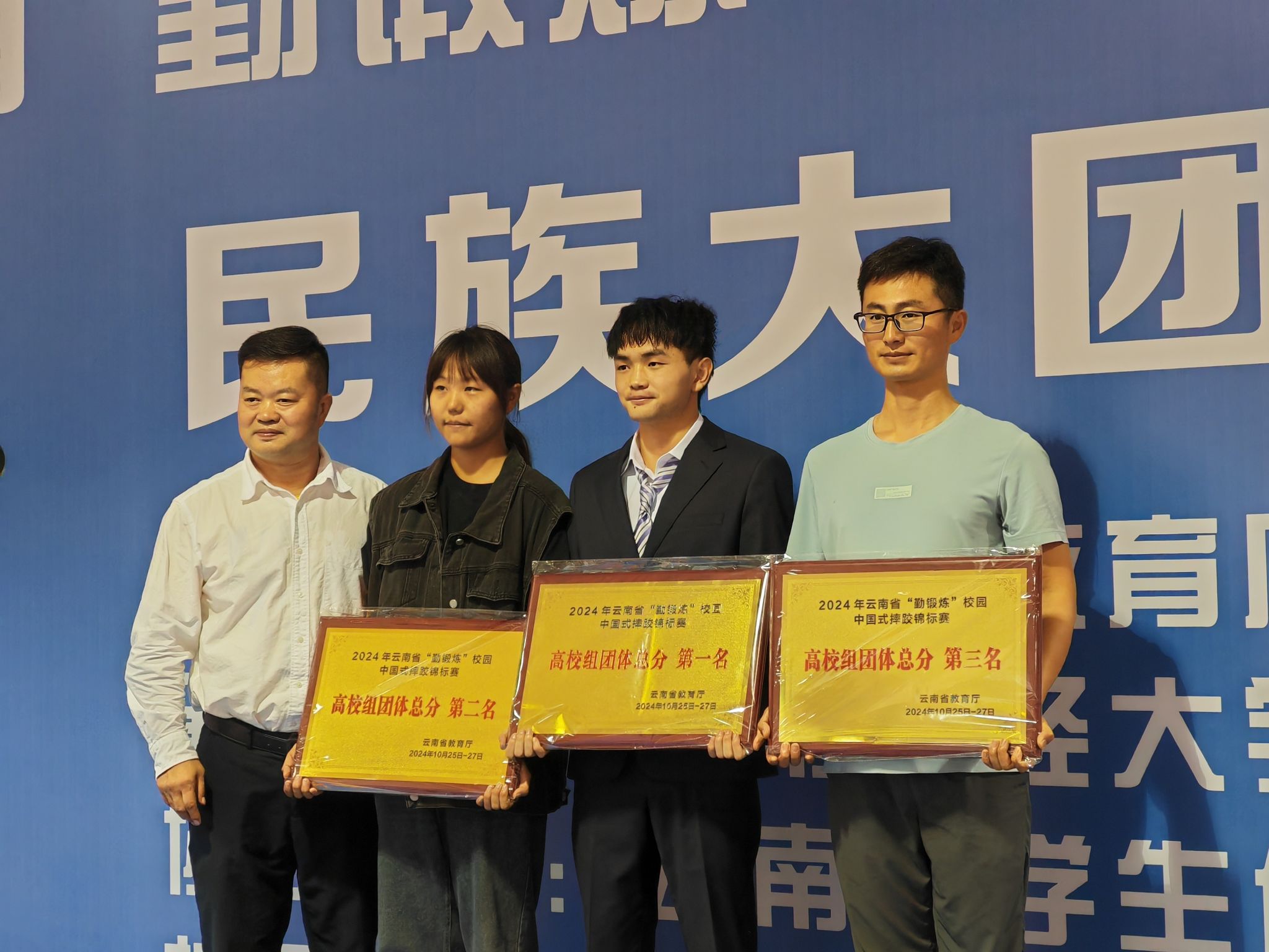 10月26日至27日,2024年云南省"勤锻炼"校园中国式摔跤锦标赛在bat365在线中国官网登录入口北院柔道馆举行。经过激烈拼搏,bat365官网代表队不负众望,取得2金、2银、6铜的好成绩,学校荣获高校团体第一名。