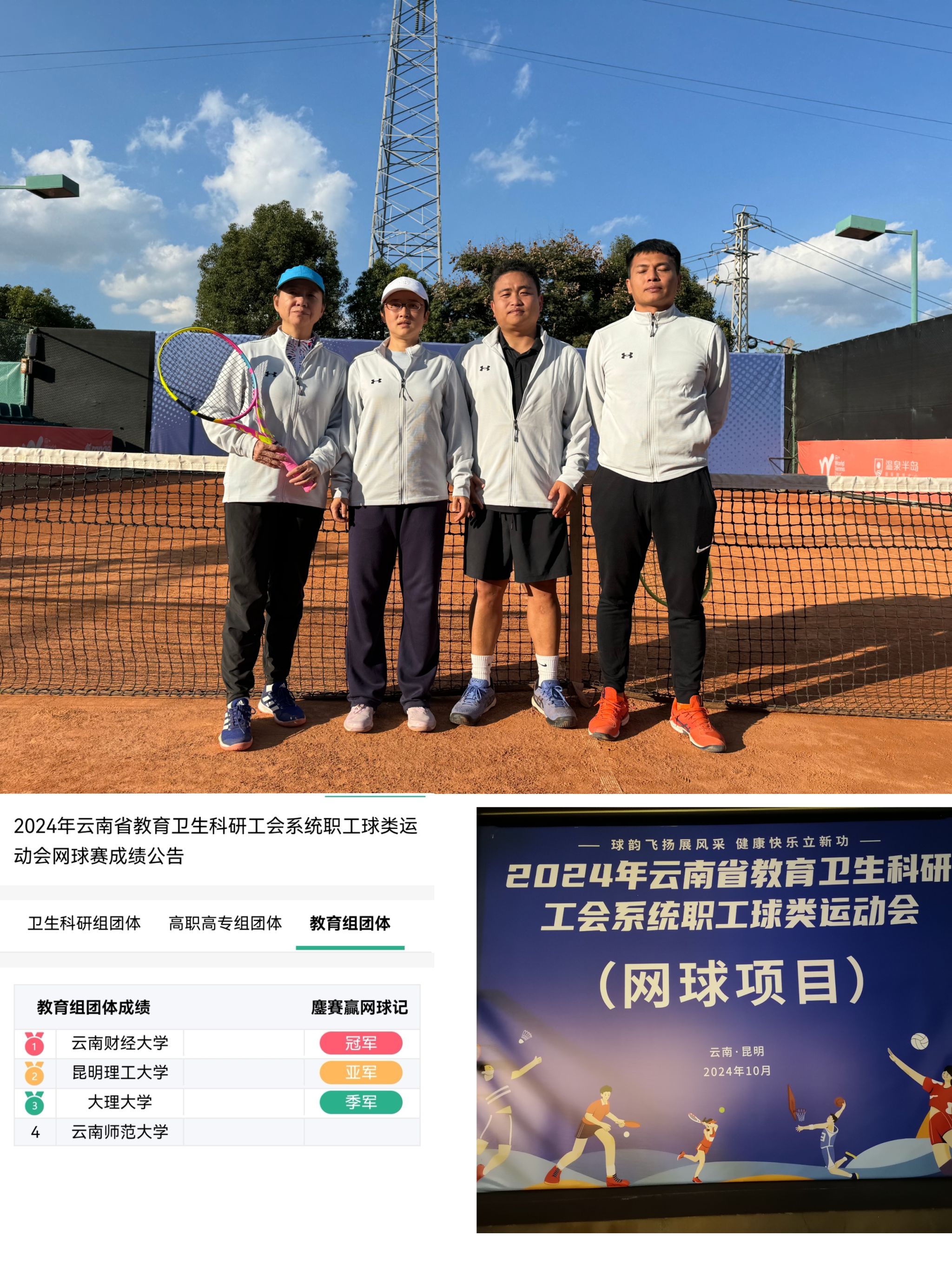 11月4日,云南省教卫科工会系统职工球类运动会在昆明冶金高等专科学校落下帷幕。bat365官网代表队在此次比赛中表现优异,网球队荣获混合团体赛冠军,男、女气排球队荣获季军。