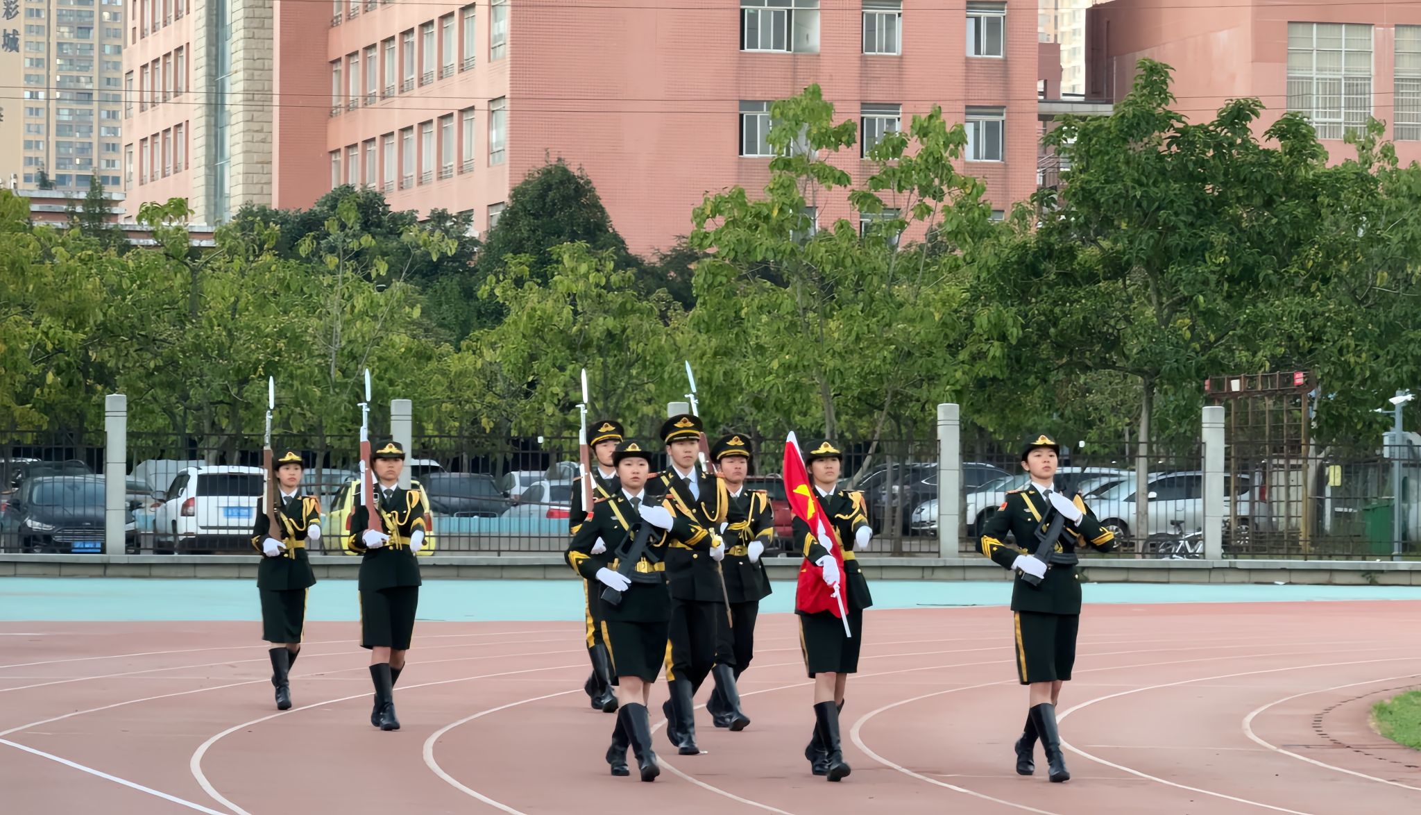 学生处(学生工作部、武装部)、会计学院、传媒与设计艺术学院师生代表,学校国防后备营全体学生参加升国旗仪式。