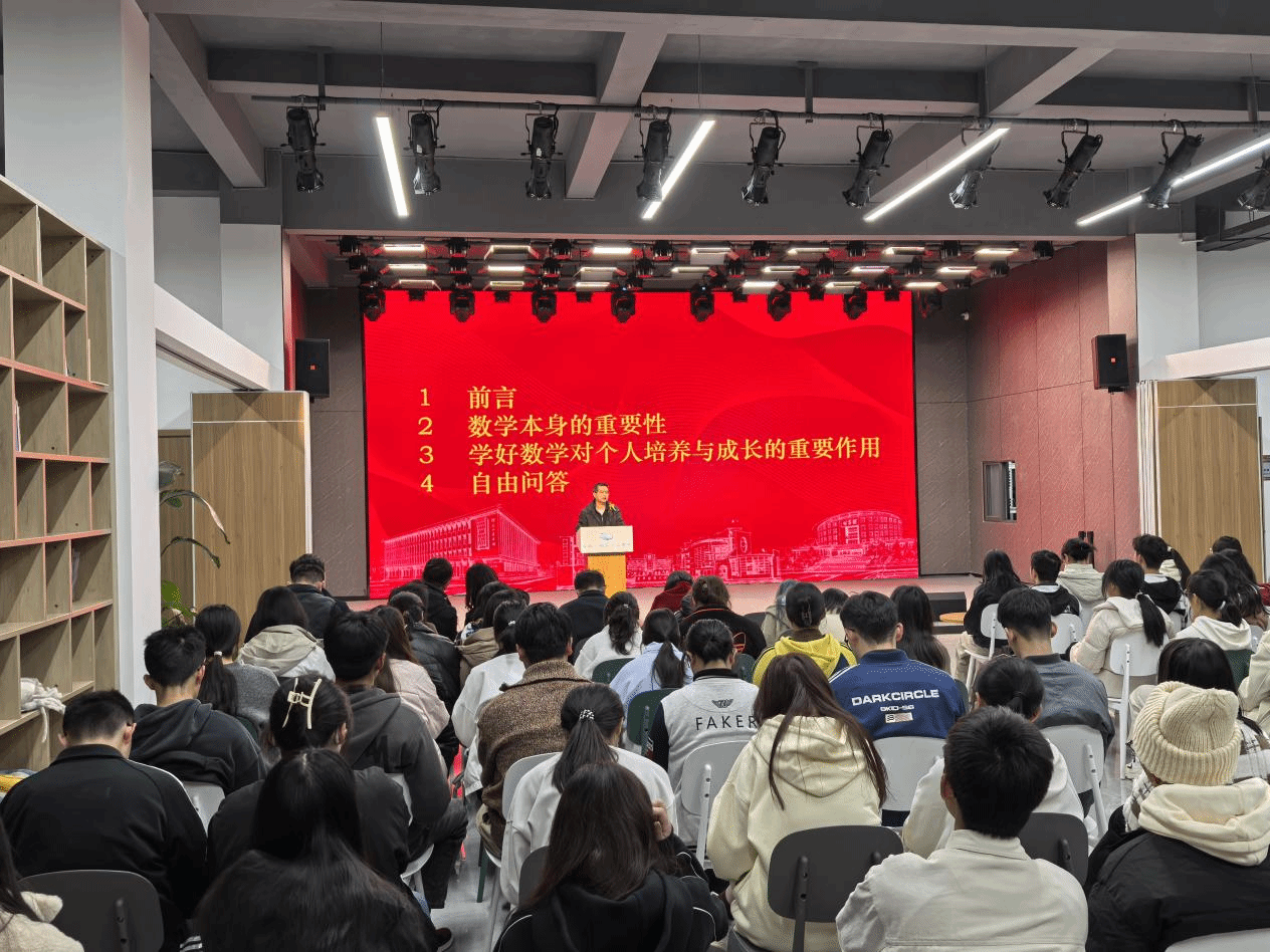 统计与数学学院数学学科带头人、应用数学中心主任王汉权开展主题为“数学:跨越知识的进阶之路”的讲座。王汉权深入浅出地讲解了数学学科的发展历程、前沿动态以及未来的发展趋势,他表示,希望同学们培养数学的逻辑思维,树立终身学习的理念,做好每个学习阶段的衔接,保持对数学的热爱和对生活的热爱,积极发现数学之美。