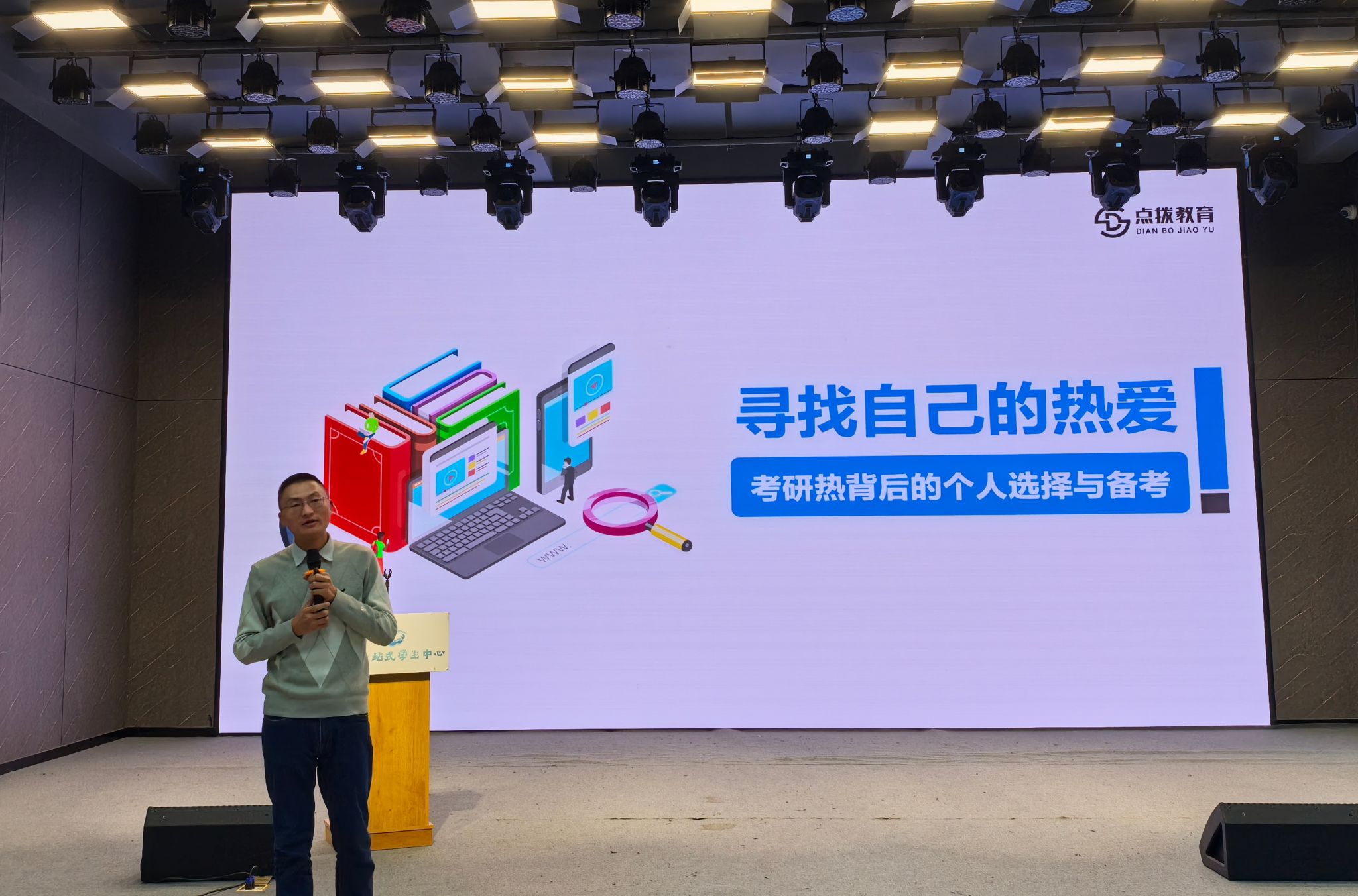 为加强学风建设,帮助同学们做好考研规划,提高同学们对考研的认识,12月3日晚,学生处(学生工作部、武装部)邀请学校2009级校友、云南春城职教服务管理有限公司执行董事、教育公司创始人杨立高校长,到学校云彩“一站式”学生中心开展“考研热背后的个人选择与备考”讲座,各学院师生代表200余人参加活动。