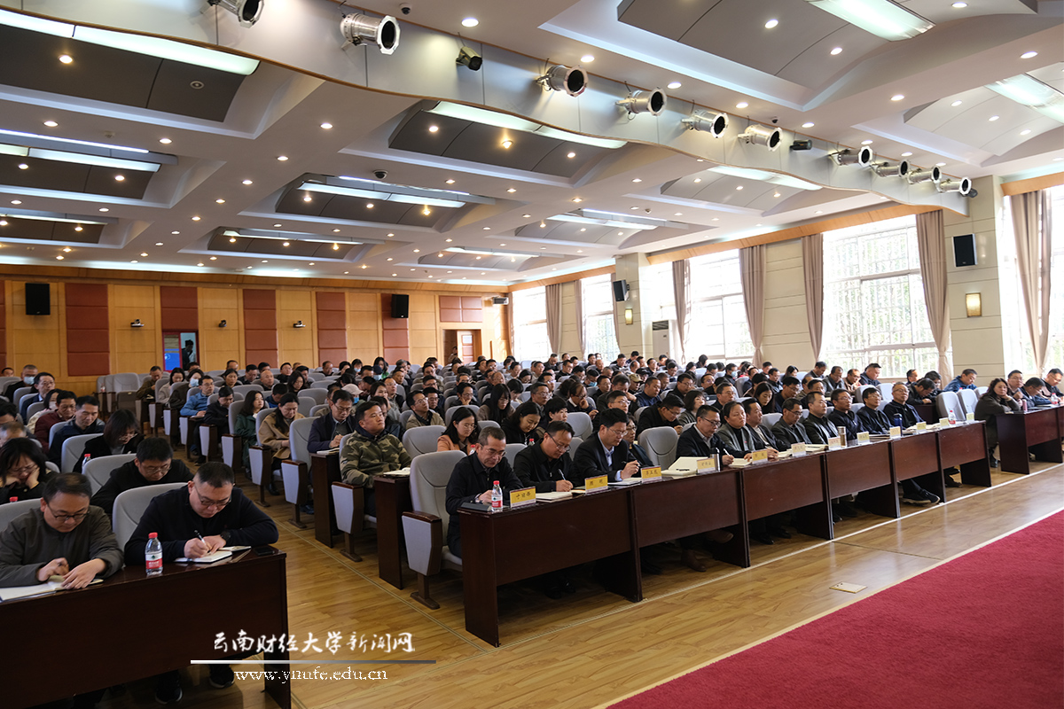 会议号召,全校上下要更加紧密地团结在以习近平同志为核心的党中央周围,全面贯彻习近平新时代中国特色社会主义思想,持续巩固深化主题教育成果,聚焦省委“3815”战略发展目标,深度融入云南省教育高质量发展三年行动计划,以更加强烈的落实意识、更加过硬的落实举措、更加务实的落实作风,深入推进学校“1186”战略任务落地见效,共同为高水平财经大学建设作出新贡献,书写“强国建设、教育何为”云财答卷,以优异成绩向新中国成立75周年献礼。