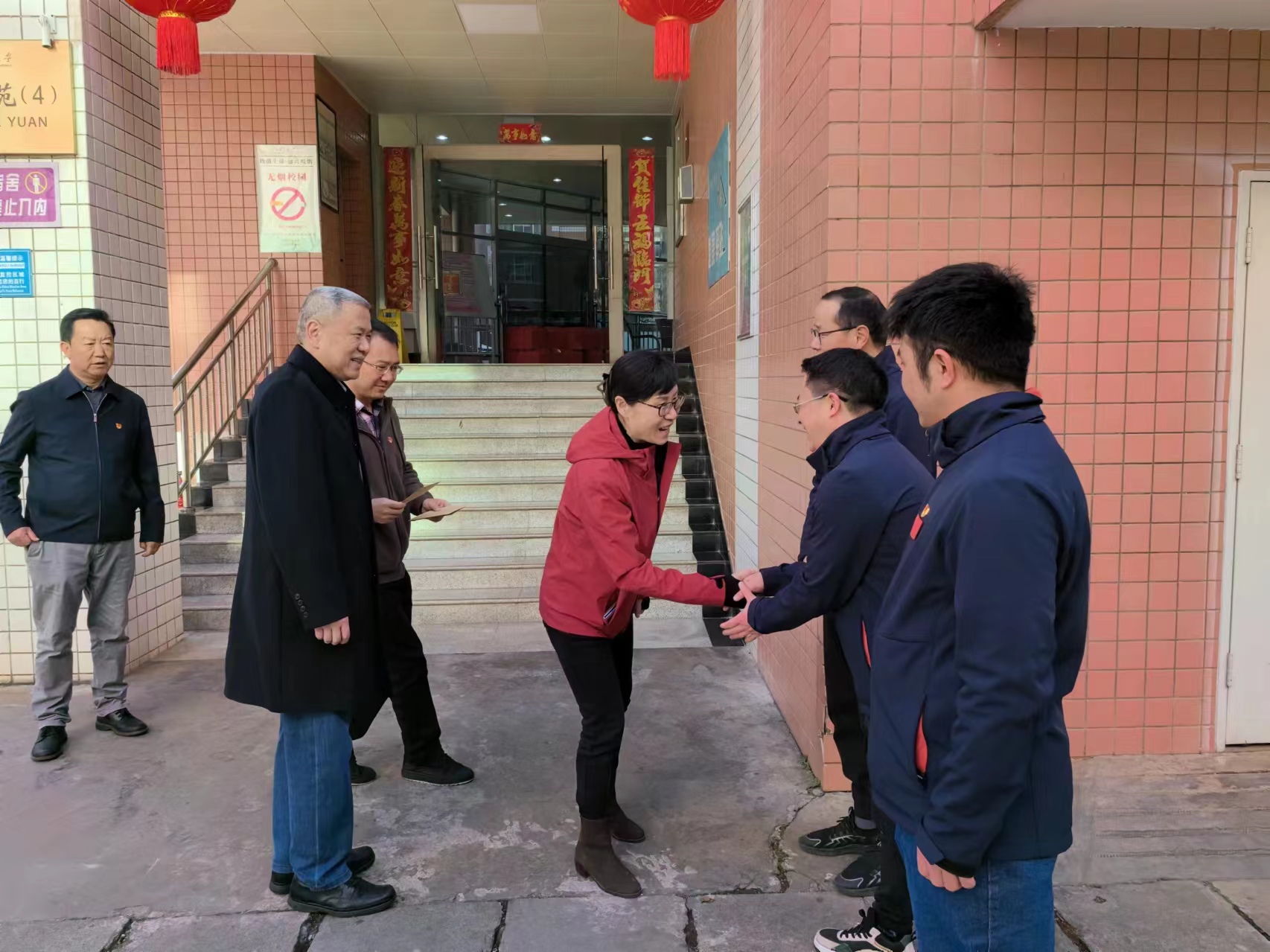 2月5日,农历腊月二十六,甲辰龙年新春佳节来临之际,bat365在线中国官网登录入口党委书记王建颖、校长王敏率队看望慰问生活困难党员、坚守一线的在岗教职工及留校学生,代表学校送去节日的问候和新春的祝福。校党委副书记陈光瑜、施仲军,副校长颜明参加慰问。